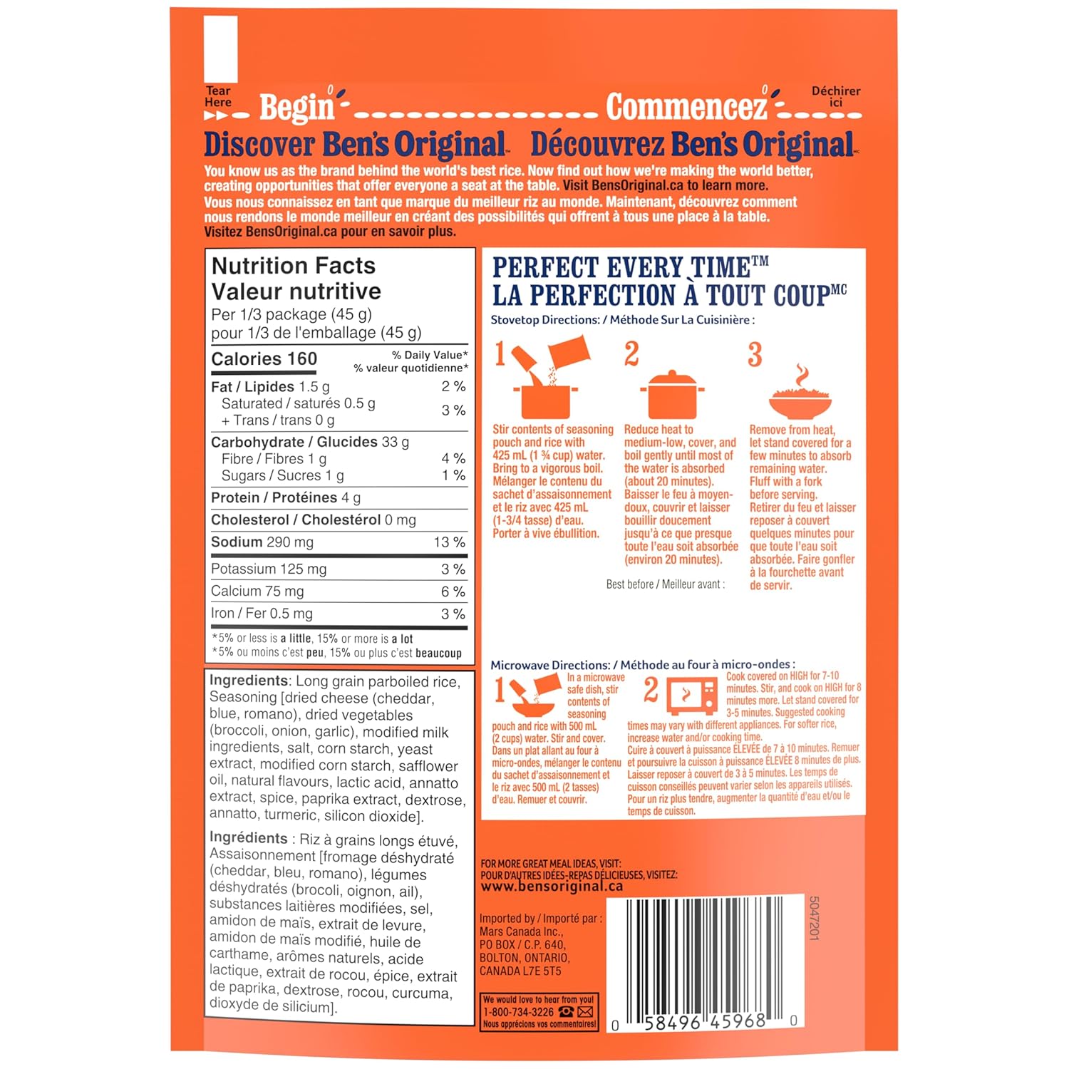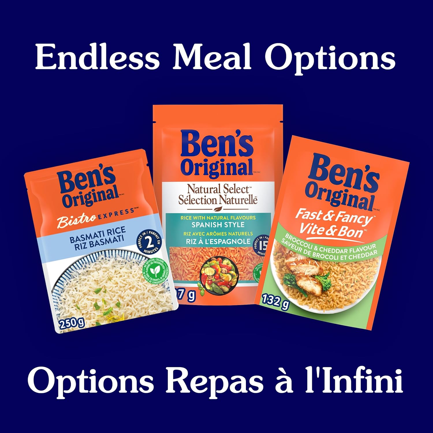 - One 132g pouch of BEN’S ORIGINAL FAST & FANCY Broccoli and Cheddar Flavour Rice (3 portions)
