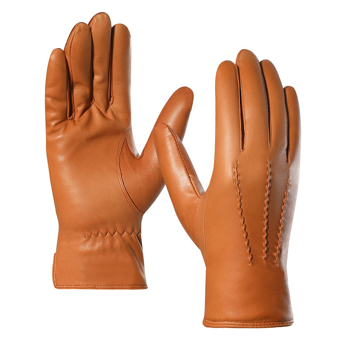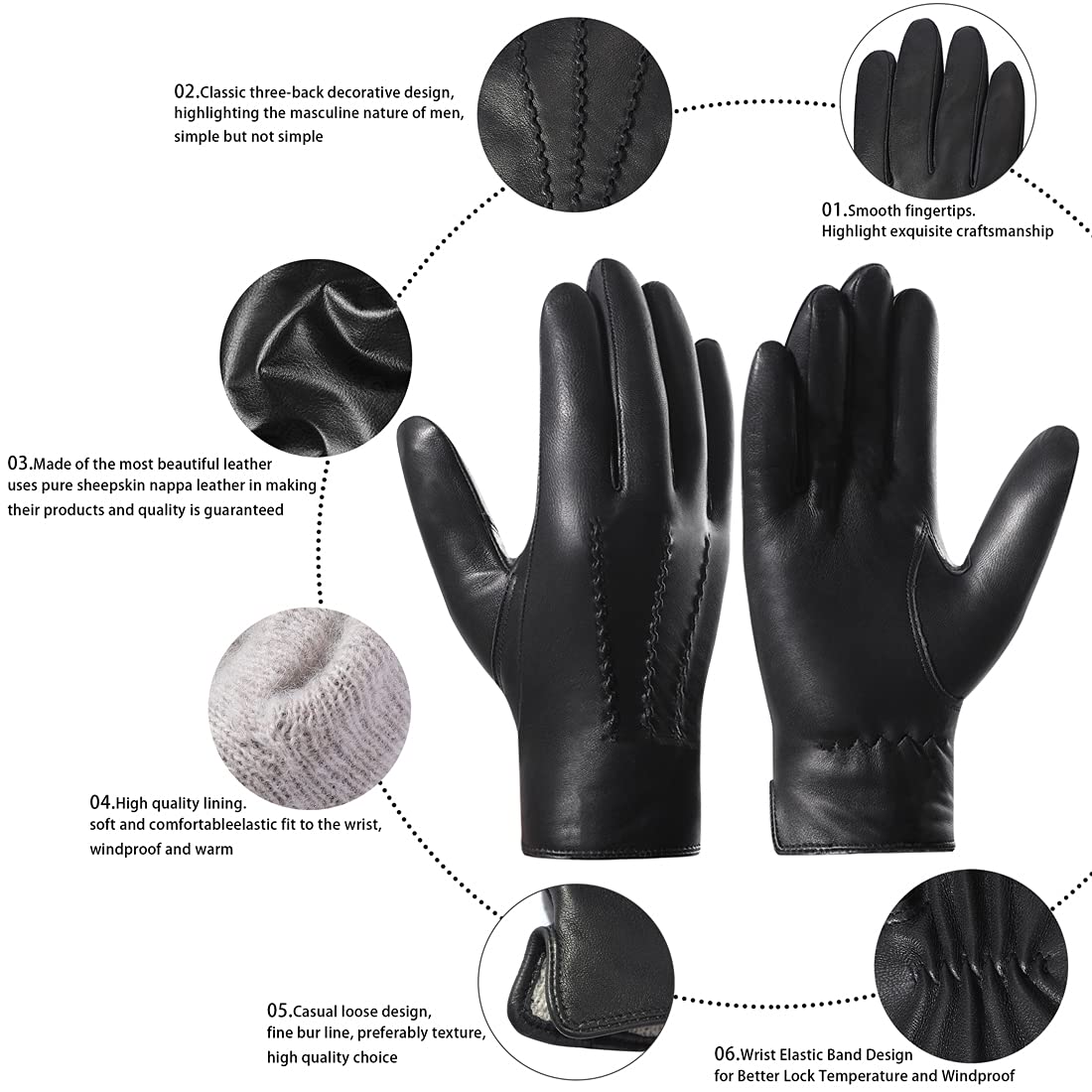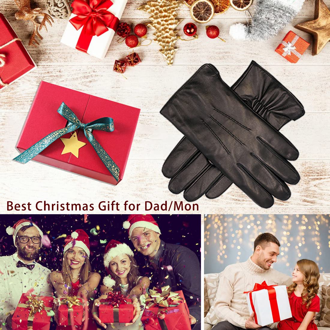 Harssidanzar Mens Luxury Italian Sheepskin Leather Gloves Wool Lined