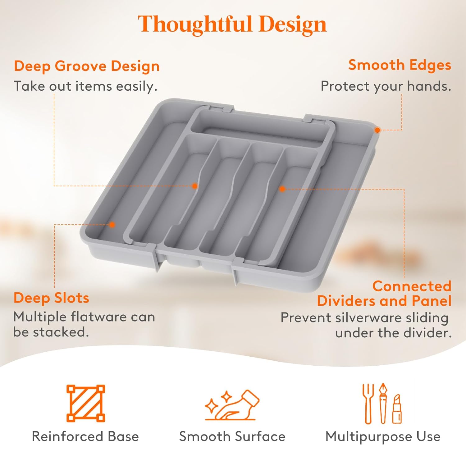 - Suitable Capacity: Organize your kitchen drawer and make more space with the silverware organizer. Comes with two expandable panels on the left and right to store more silverware, cutlery, and kitchen utensils