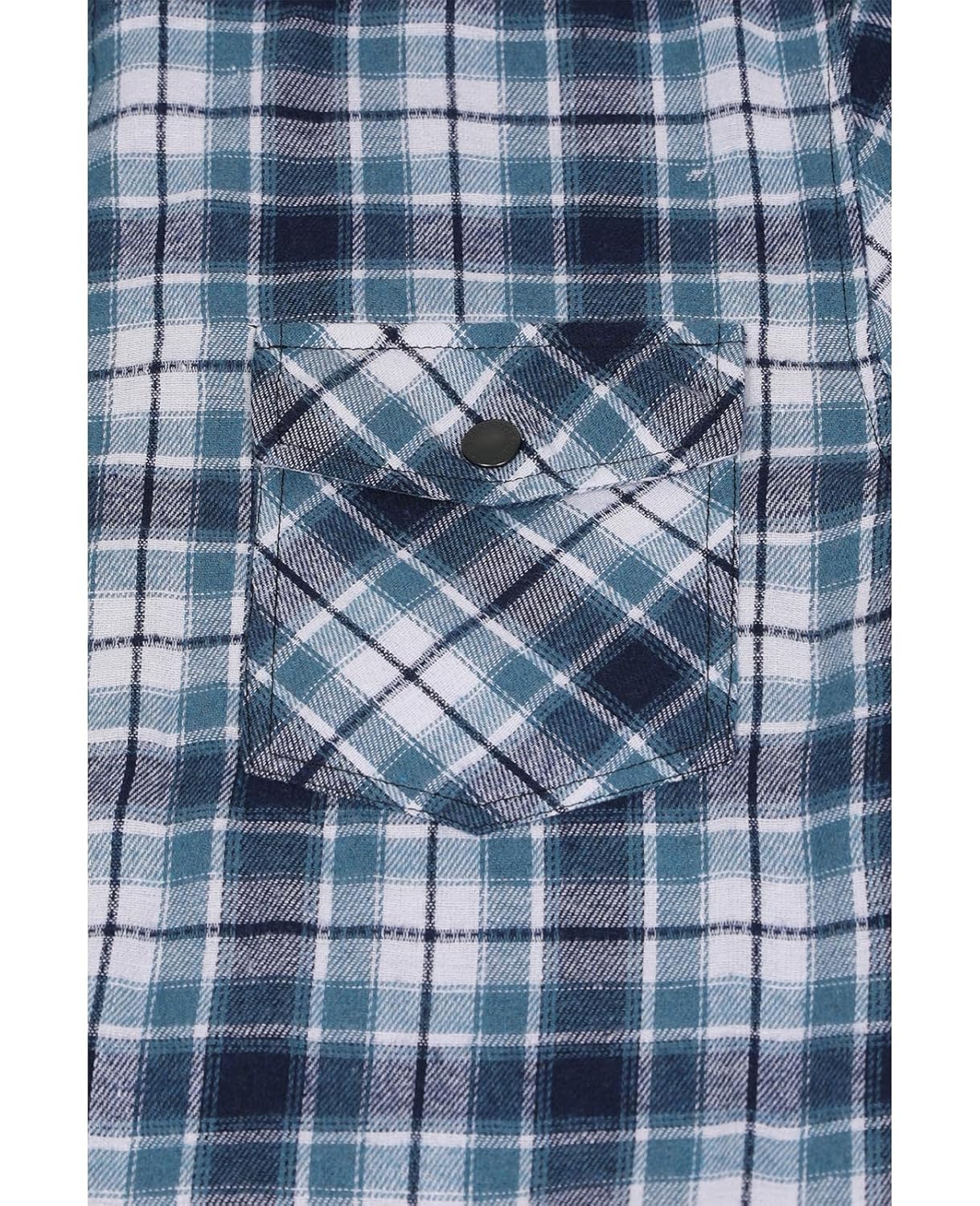 - Attached textured knit lined hood with drawcord,2 snap button front dual chest pockets and 2 side hand pockets,plaid print shirt jacket.