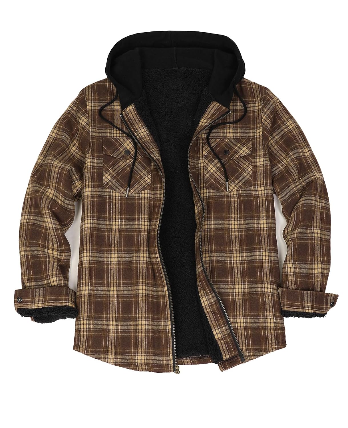 - Hooded flannel lined long sleeve shirt hoodie jacket with full zipper front closure to keep the cold away,quality outdoor wear.