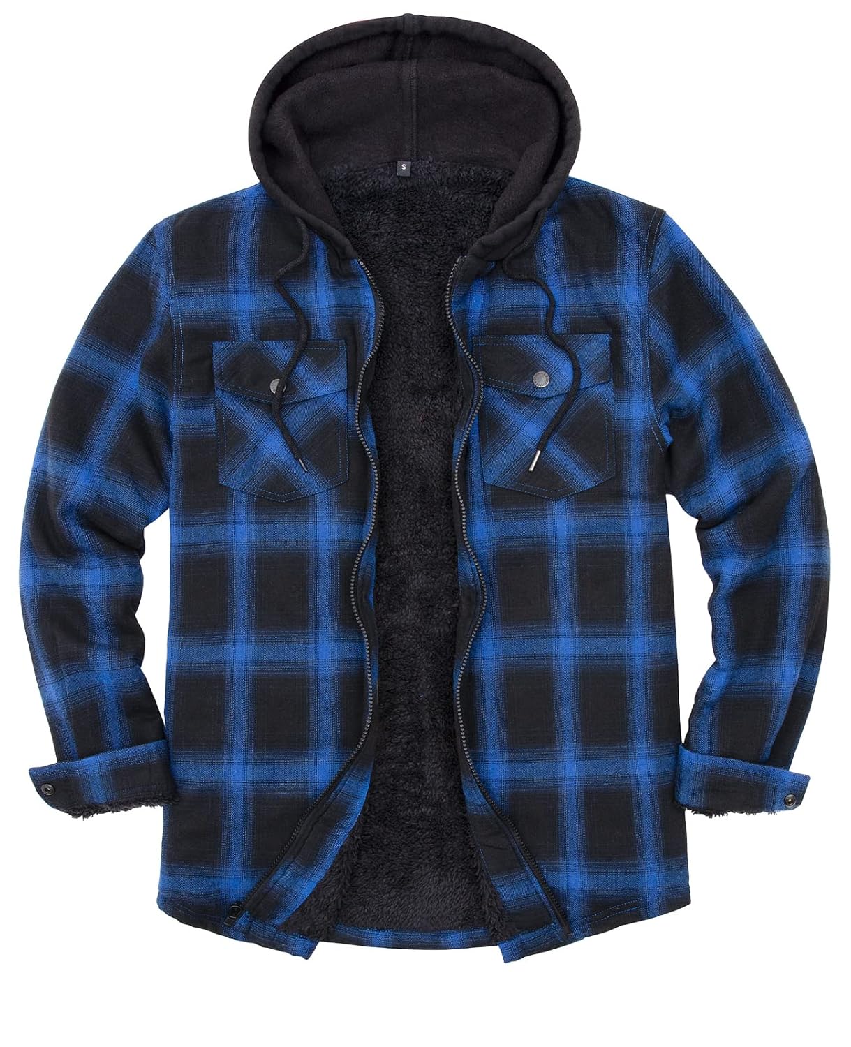 - All Sherpa Fleece Lined Flannel Jacket with Hood:sherpa lined flannel shirt for men,even in the sleeve,pre-washed for for an extra-soft feel.