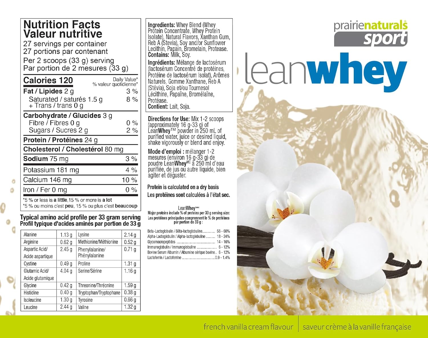 Prairie Naturals Lean Whey Protein Vanilla Cream Powder, 454 Gram