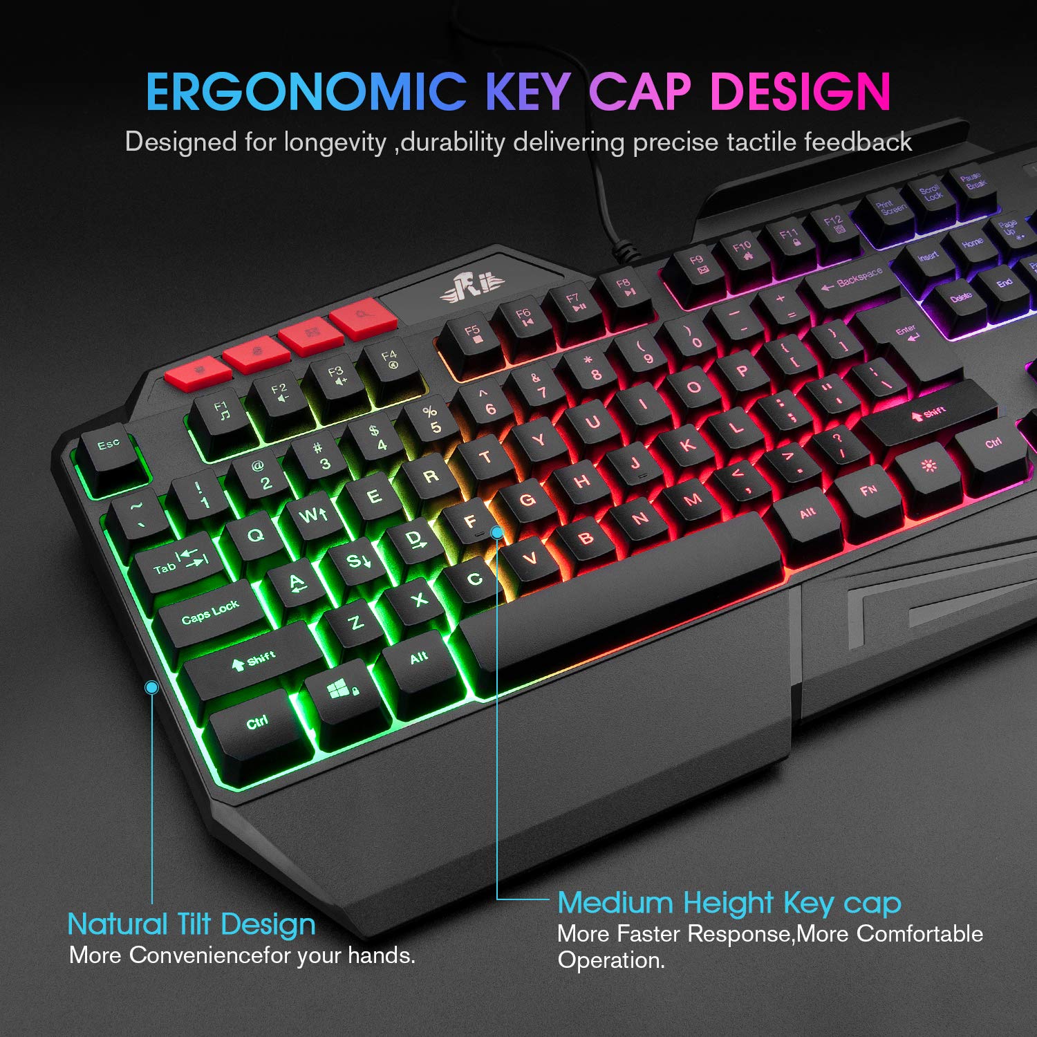 - 【Rainbow Backlight keyboard】Standard keyboard with RGB Rainbow backlit ,please note that the backlit can not support the Mac os system. Ergonomic, ultra-low profile keyboard