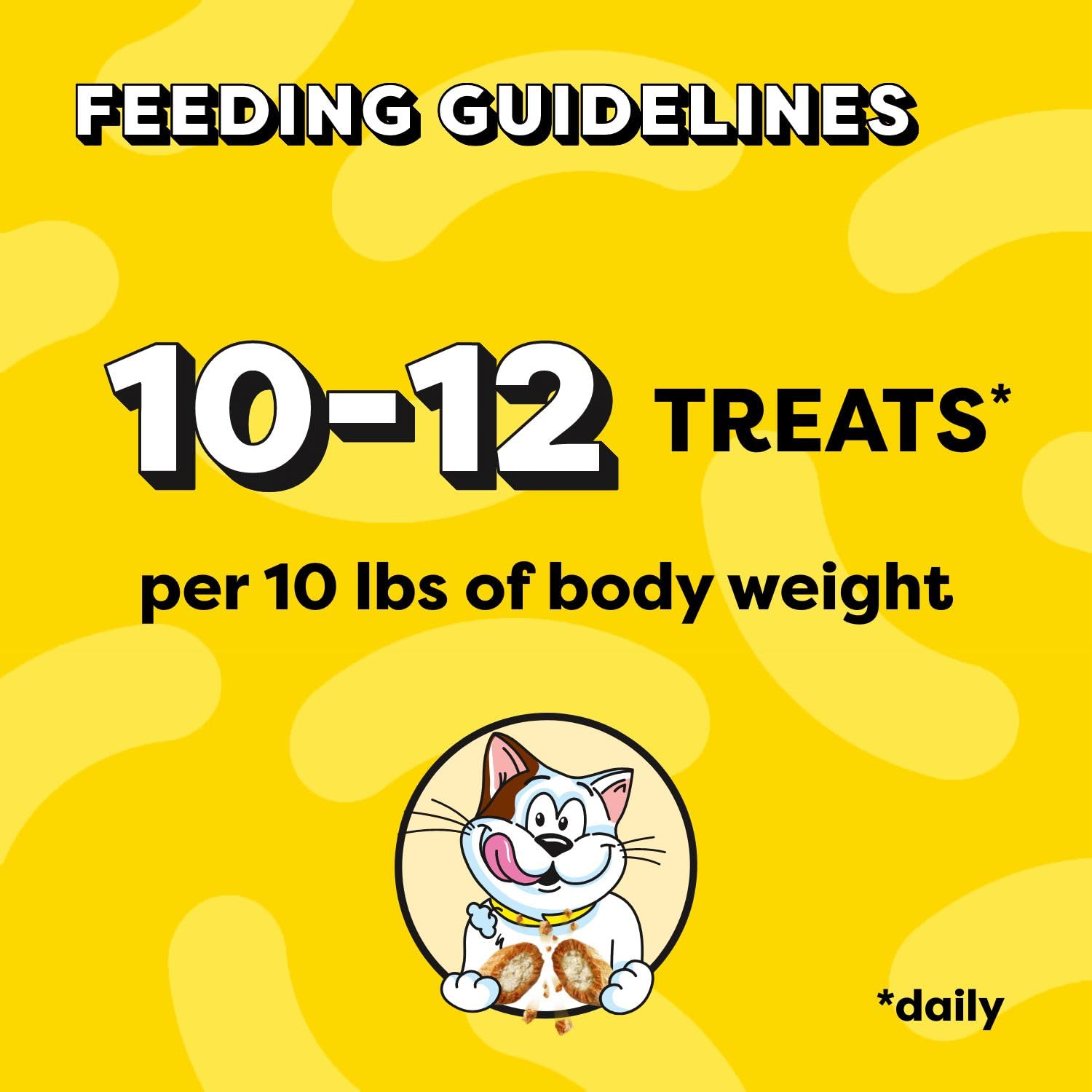 A small handful is perfect for training or rewarding good behavior. One thing to note is if your cat has a sensitive stomach, it’s best to introduce these slowly.