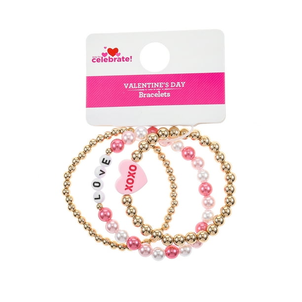 Way to Celebrate Valentine’s Day ” ” Bracelets, 3 Pieces
