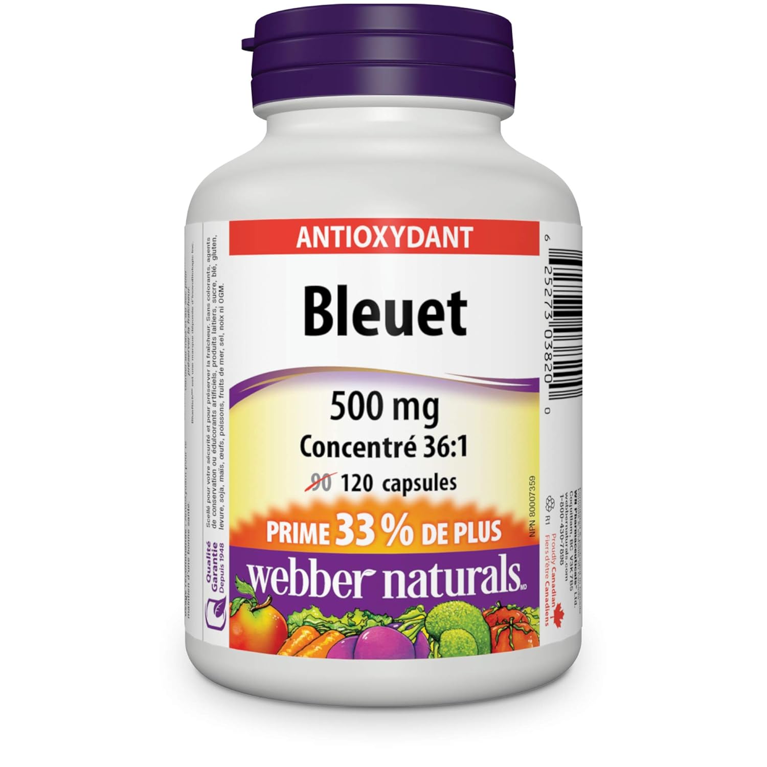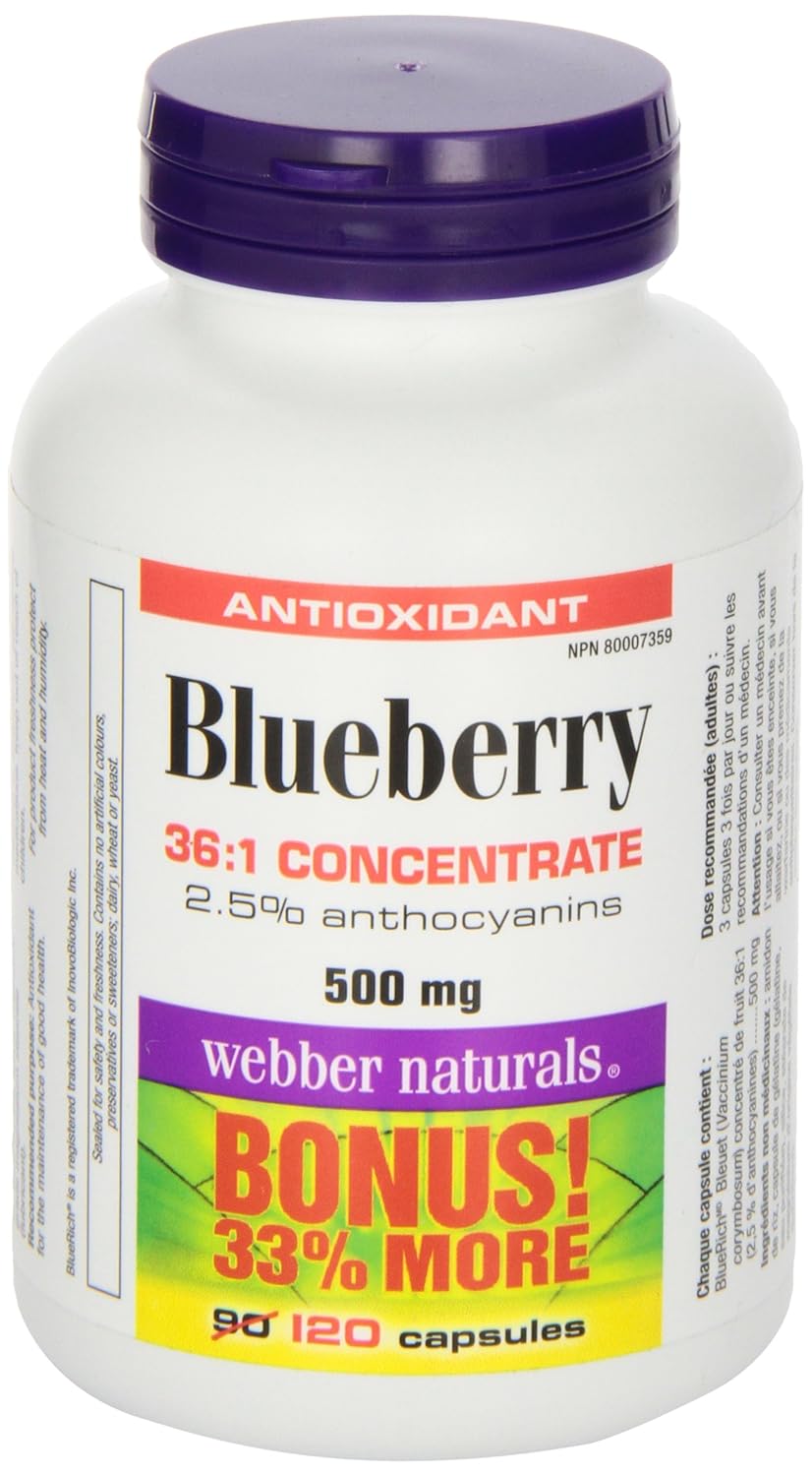 Webber Naturals Blueberry 500 mg, 120 Capsules, Antioxidant Support