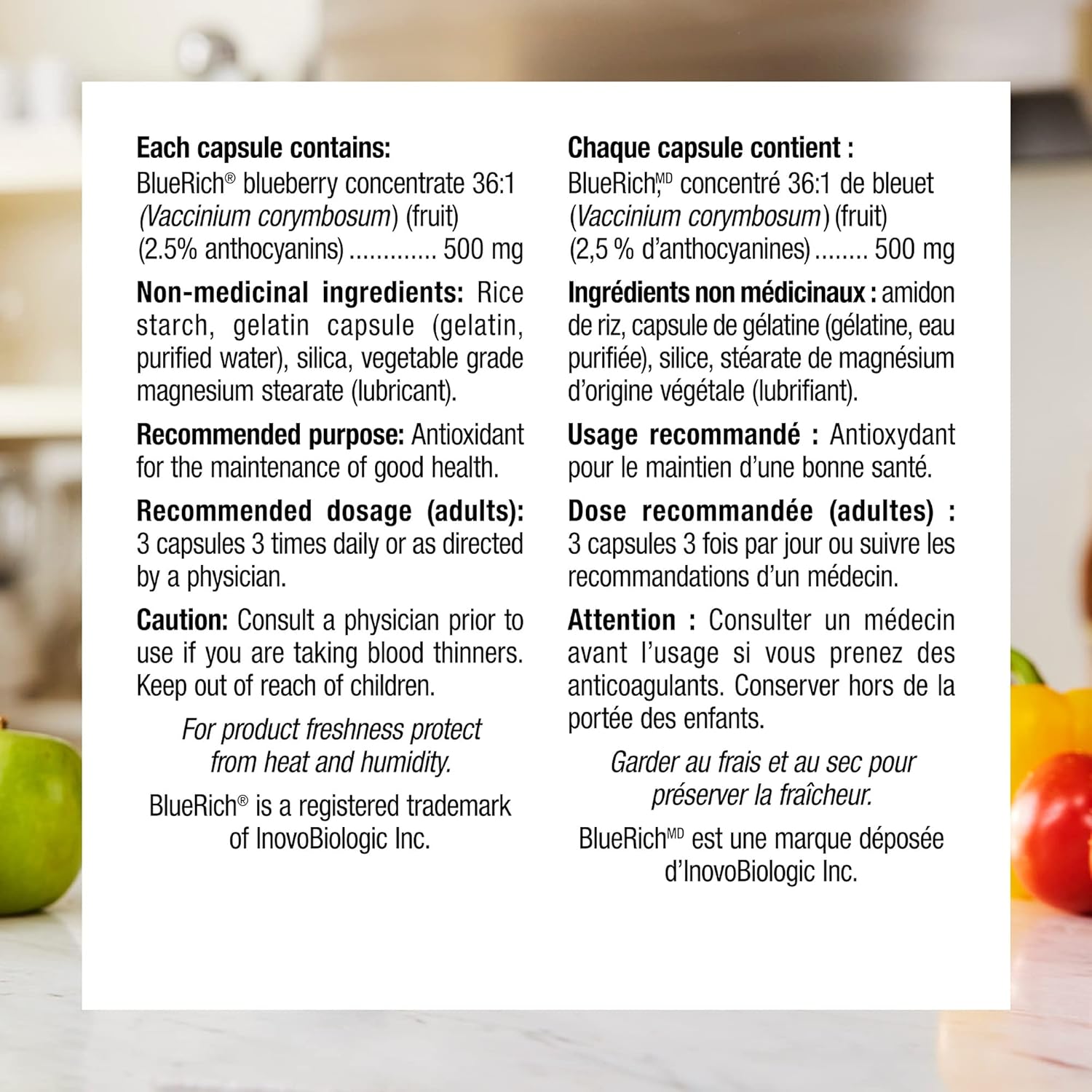 - Each capsule contains a 36:1 concentrate, the equivalent of 36 g of blueberries into one gram of concentrate.