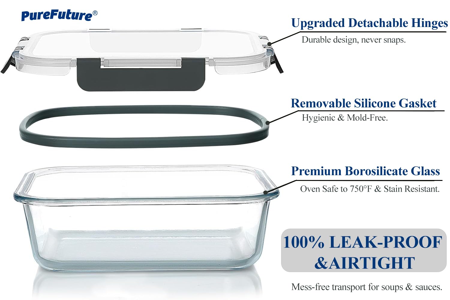 - 【Upgraded detachable locking lids】 Features our signature heavy-duty hinge mechanism that resists snapping even after daily use; the detachable design ensures thorough cleaning with no trapped food residue, making it ideal for frequent lunch box usage