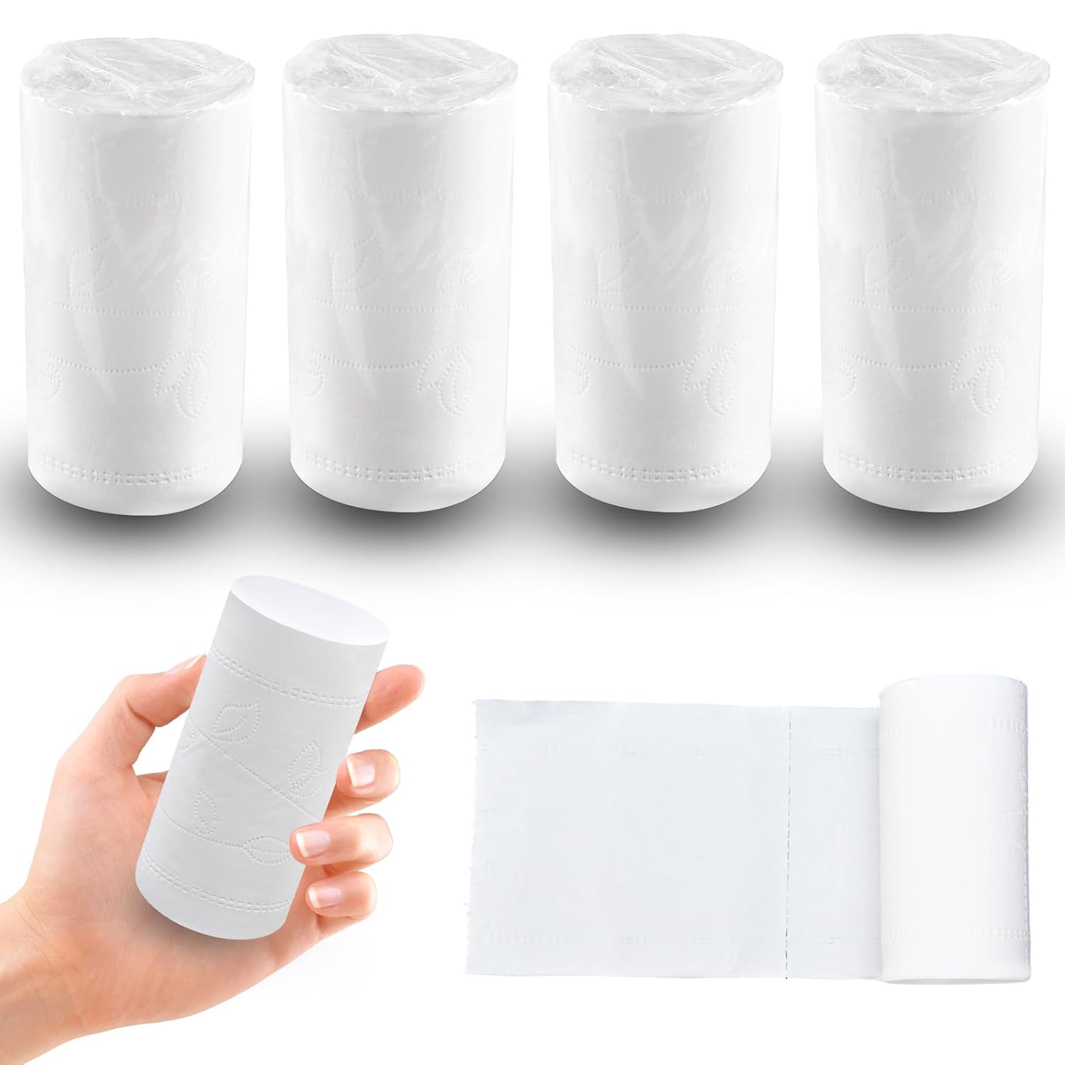 4 Rolls Travel Toilet Paper,Portable Camper Toilet Paper,Independent Packaging Travel Toilets Papers to go Packs,Coreless Toilets Papers for Rv,Camping,Backpacking and Boat