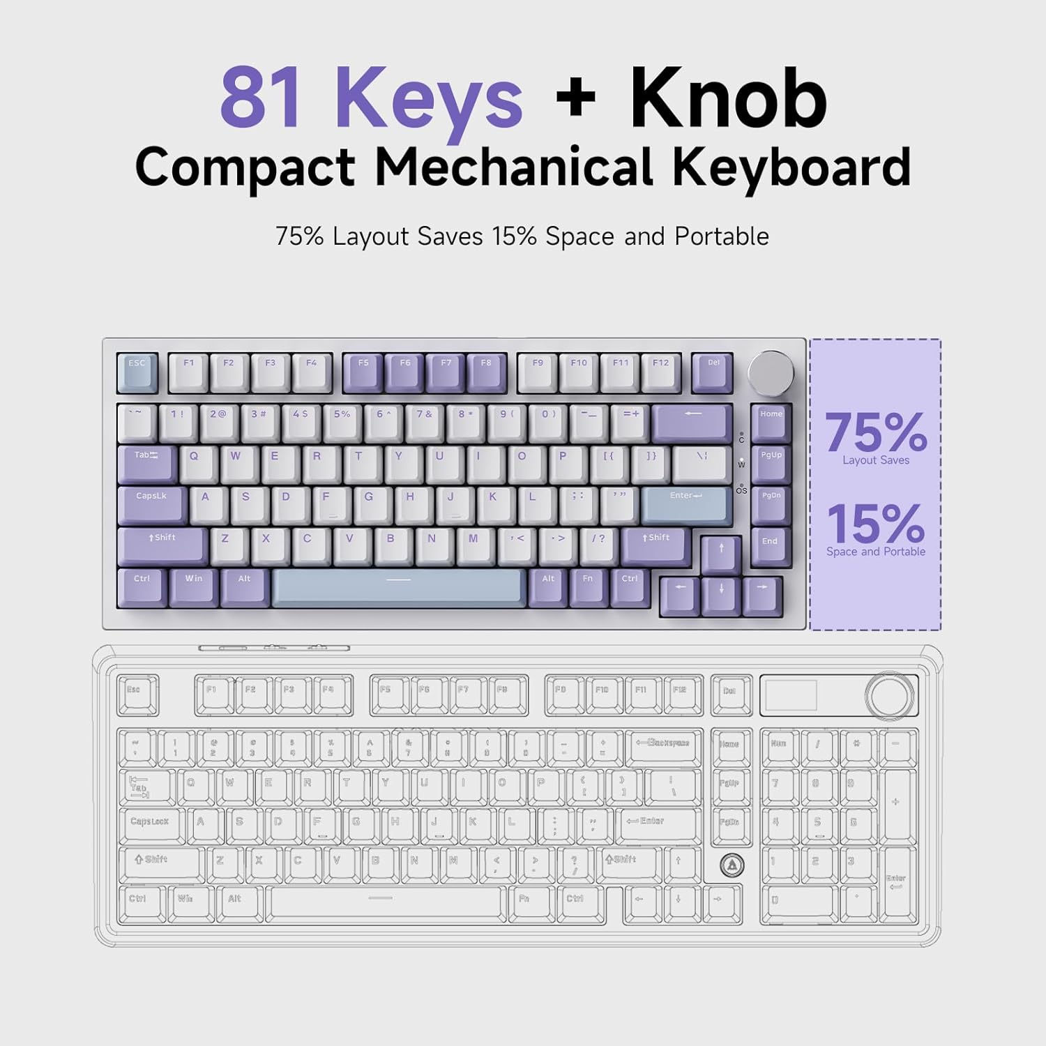 Ajazz AK820 75% Wired Gasket Mechanical Gaming Keyboard with Volume Knob – South Facing LED – PBT Keycaps – Programmable RGB Hot Swap Keyboard (AK820 Purple White Blue)