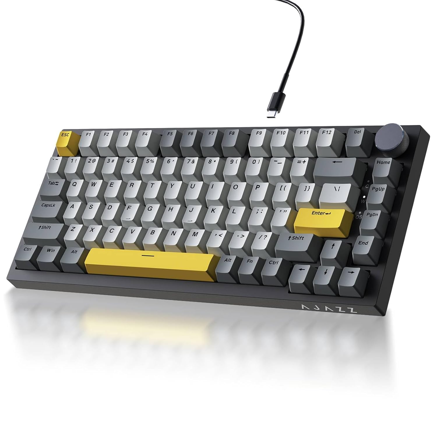 - 【Immersive RGB Lighting】AK820 AJAZZ Dive into a world of customizable RGB lighting with our programmable mechanical keyboard. The south-facing LED design and two-color injection molded PBT keycaps deliver soft RGB lights through the keycaps’ gaps. Choose from 20 default lighting modes with “FN+|”, or unleash your creativity with compatible software for personalized effects.