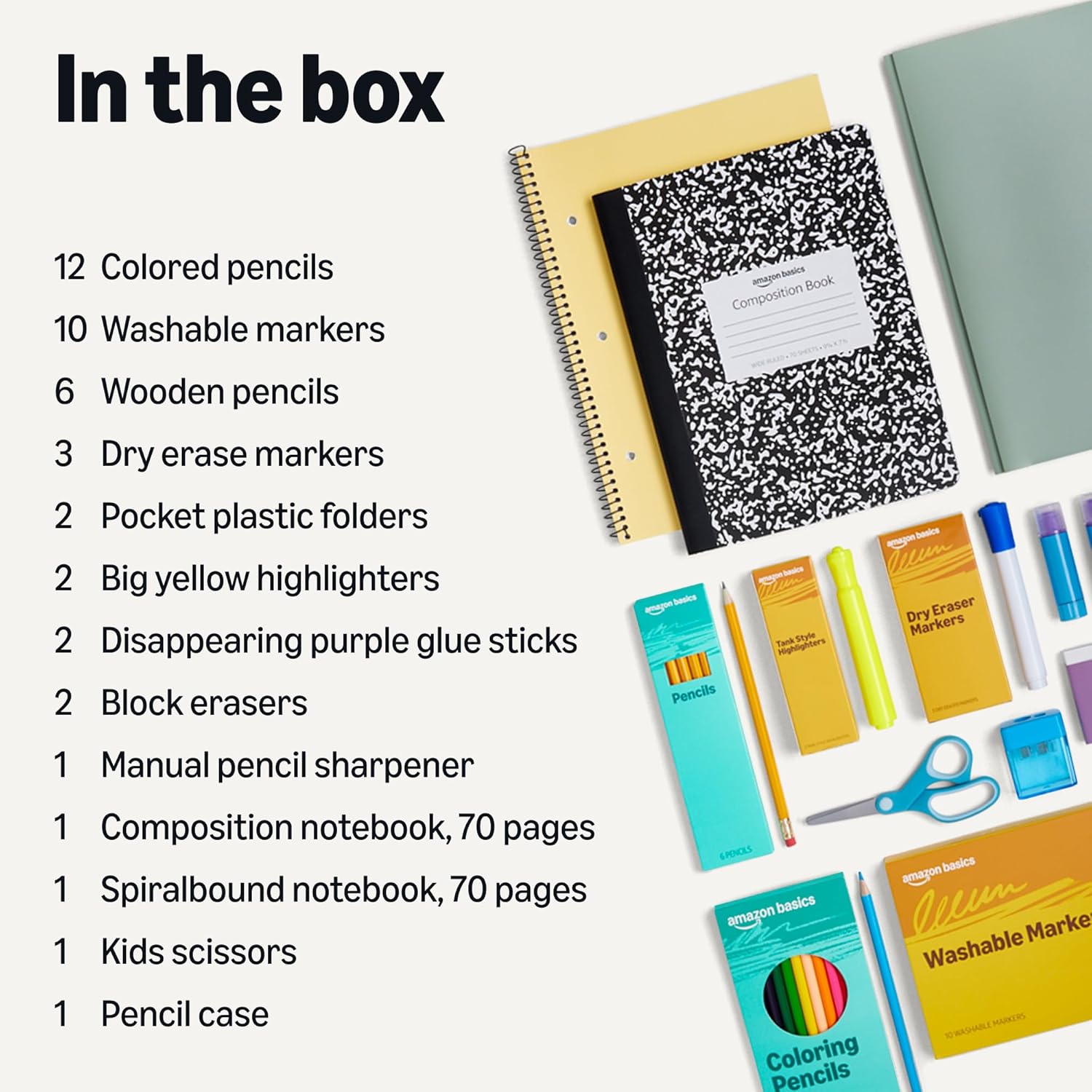 9 reviews for Amazon Basics Back to School Supplies Kit with colored Box, 44 Count, Multicolor
