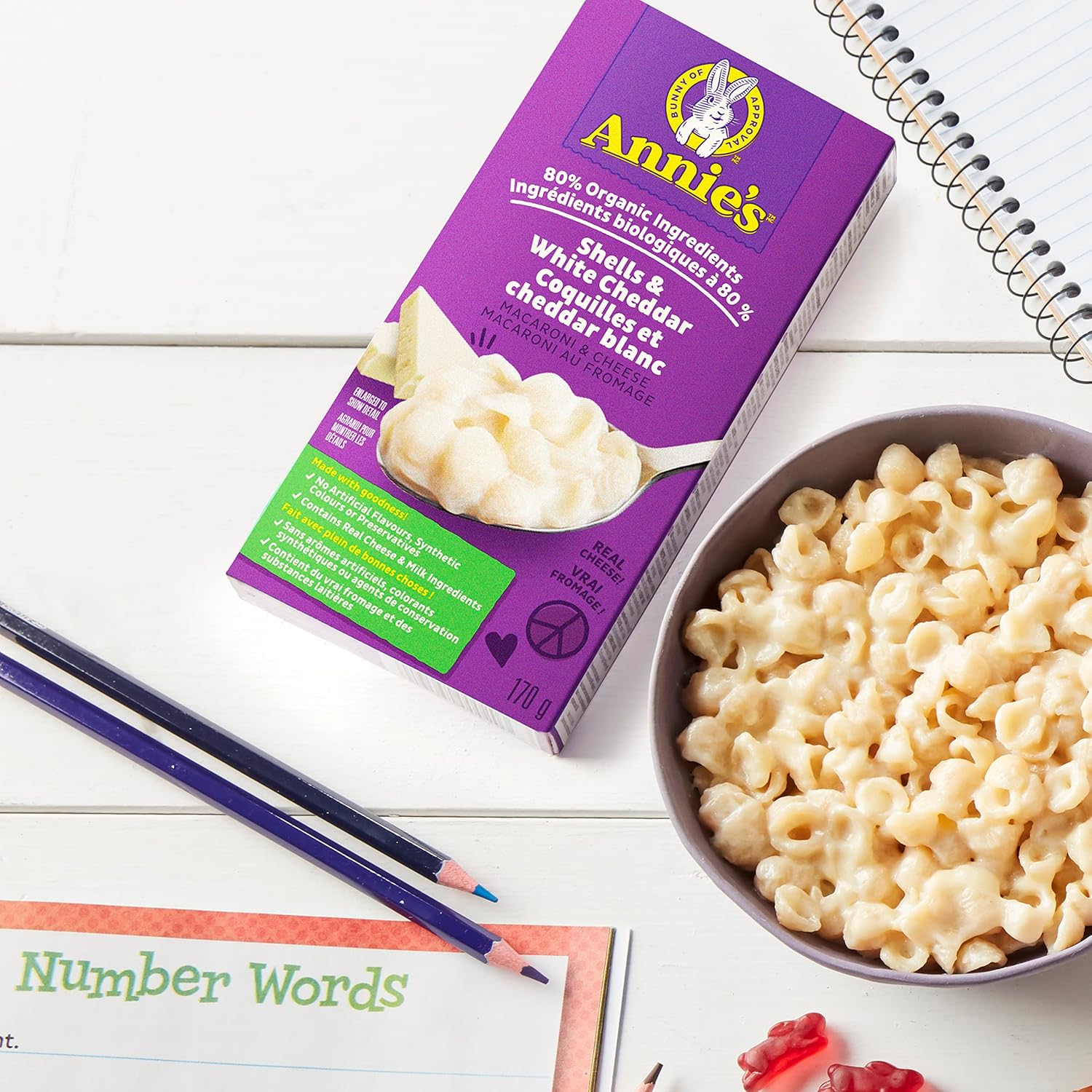 - NON-GMO: We believe in the power of good food; Our 80% organic macaroni and cheese is non-GMO, offering a great meal option; Savour the creamy delight of our Annies white cheddar mac n cheese with complete peace of mind