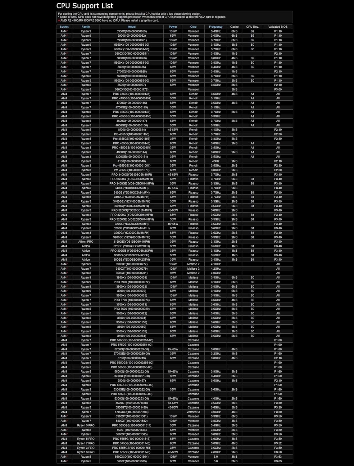 AMD Ryzen 3000 ,4000 ,5000 |