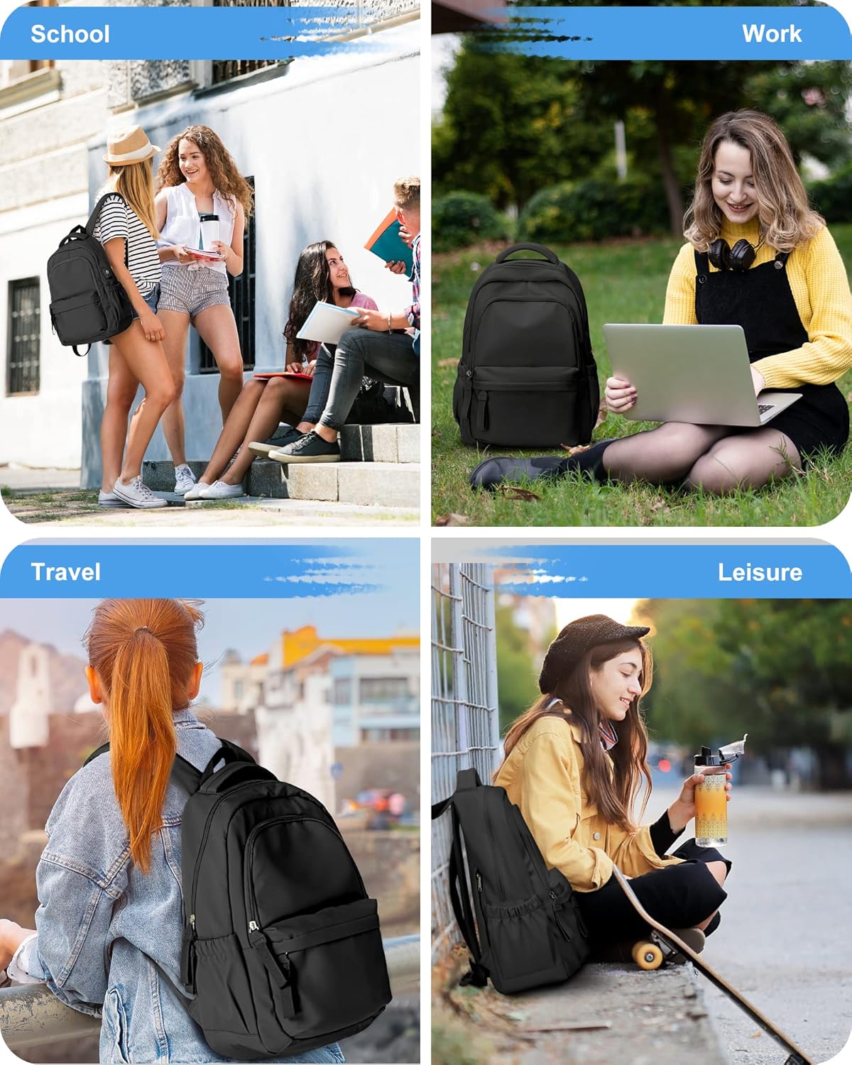 Backpack for School Black Women College High School Bag for Girls Teen Boys Book Bag Casual Travel Laptop Backpacks for Men