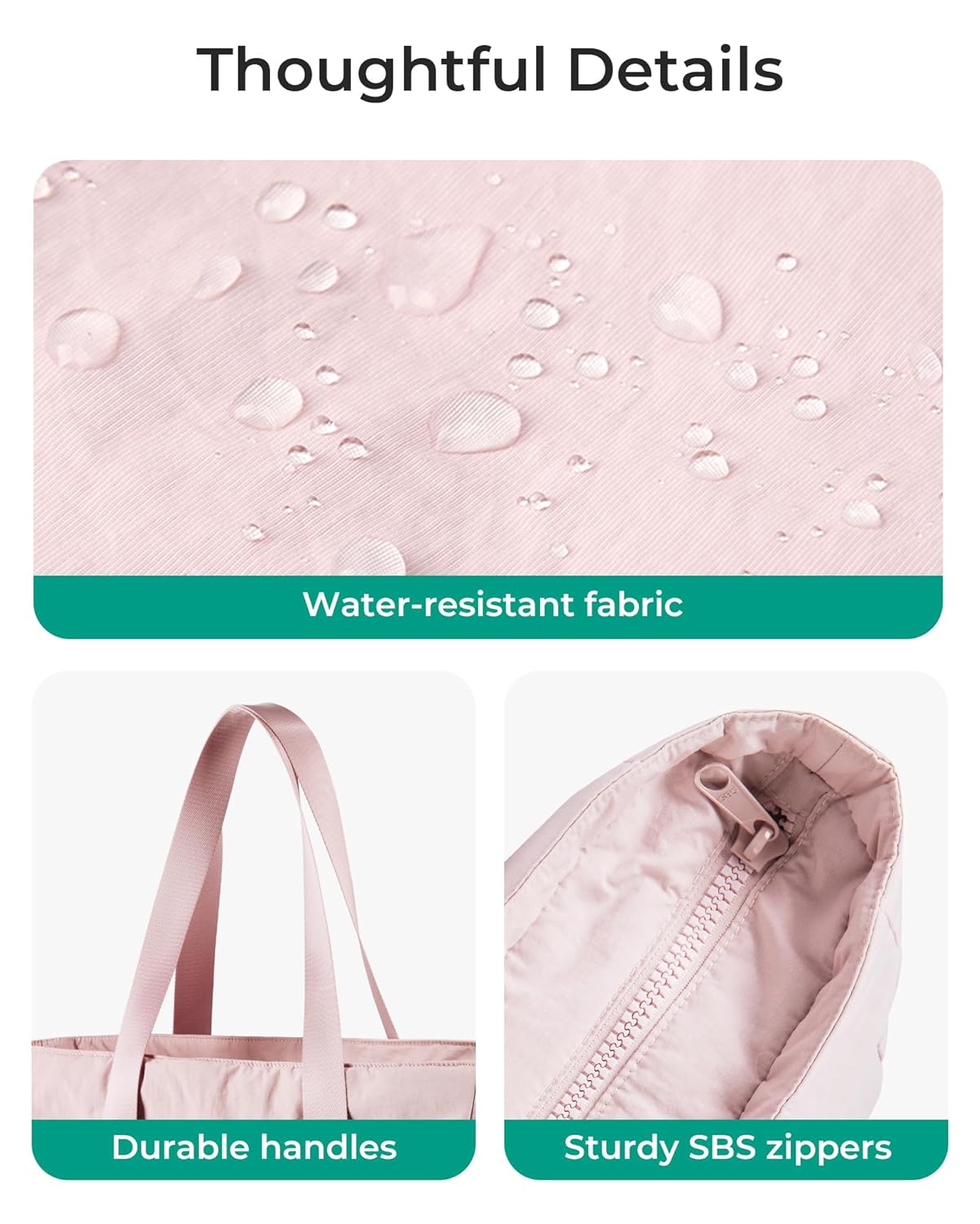 BAGSMART Women Tote Bag Large Shoulder Bag Top Handle Handbag with Yoga Mat Buckle for Gym, Work, Pink, Medium