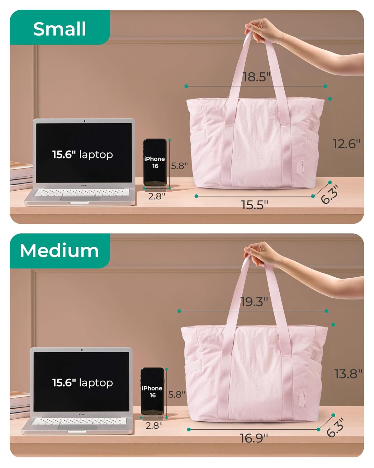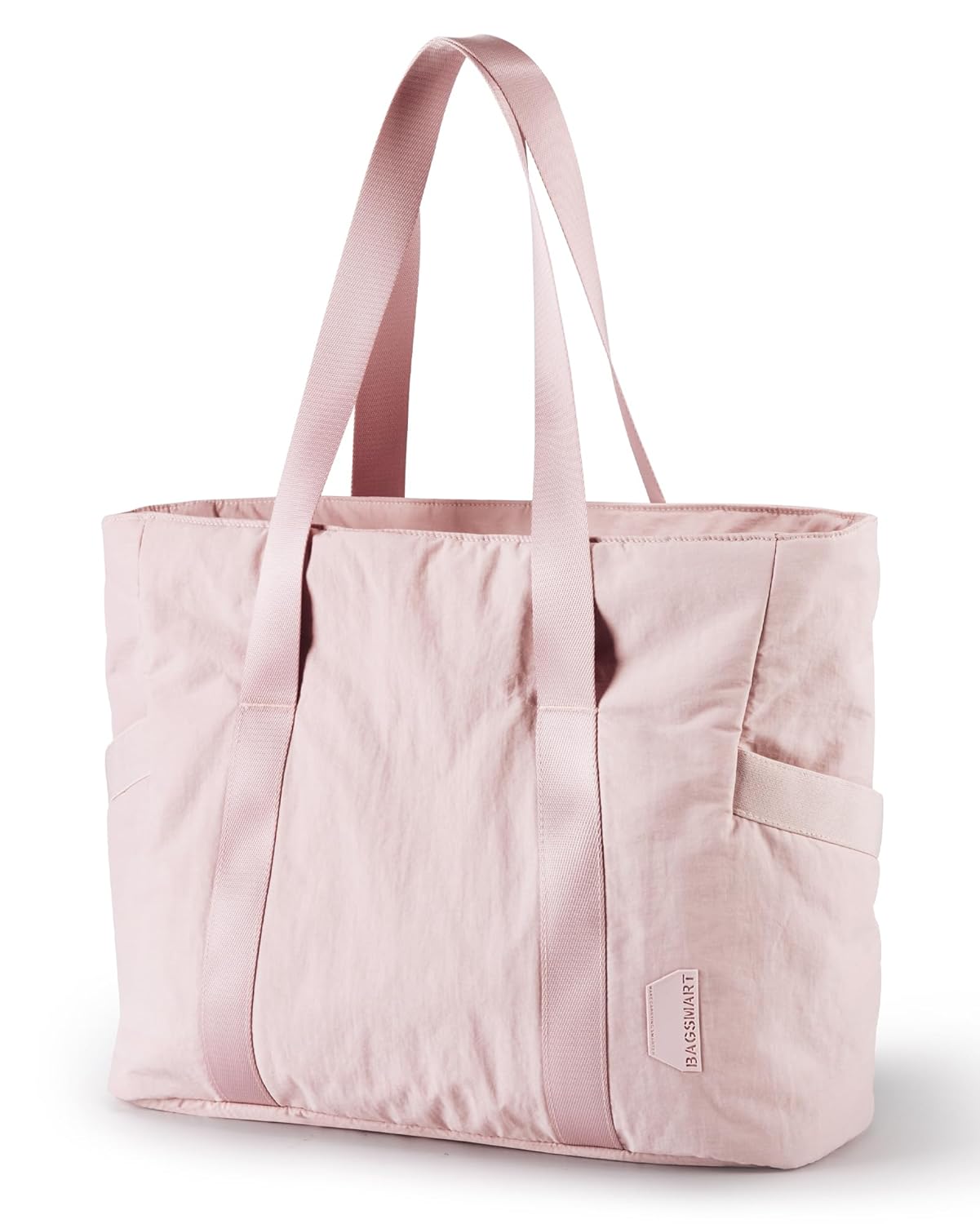 My wife uses the BAGSMART Women Tote Bag daily, and she absolutely loves it! The bag is the perfect size – large enough to fit everything she needs for both the gym and work, but not too bulky. The yoga mat buckle is a great feature, making it super easy to carry her mat without taking up extra space inside the bag. The pink color is stylish and versatile, and the quality is great. Whether she’s heading to the office or a workout, it’s the perfect all-in-one tote. Highly recommend for anyone looking for a functional yet fashionable bag!