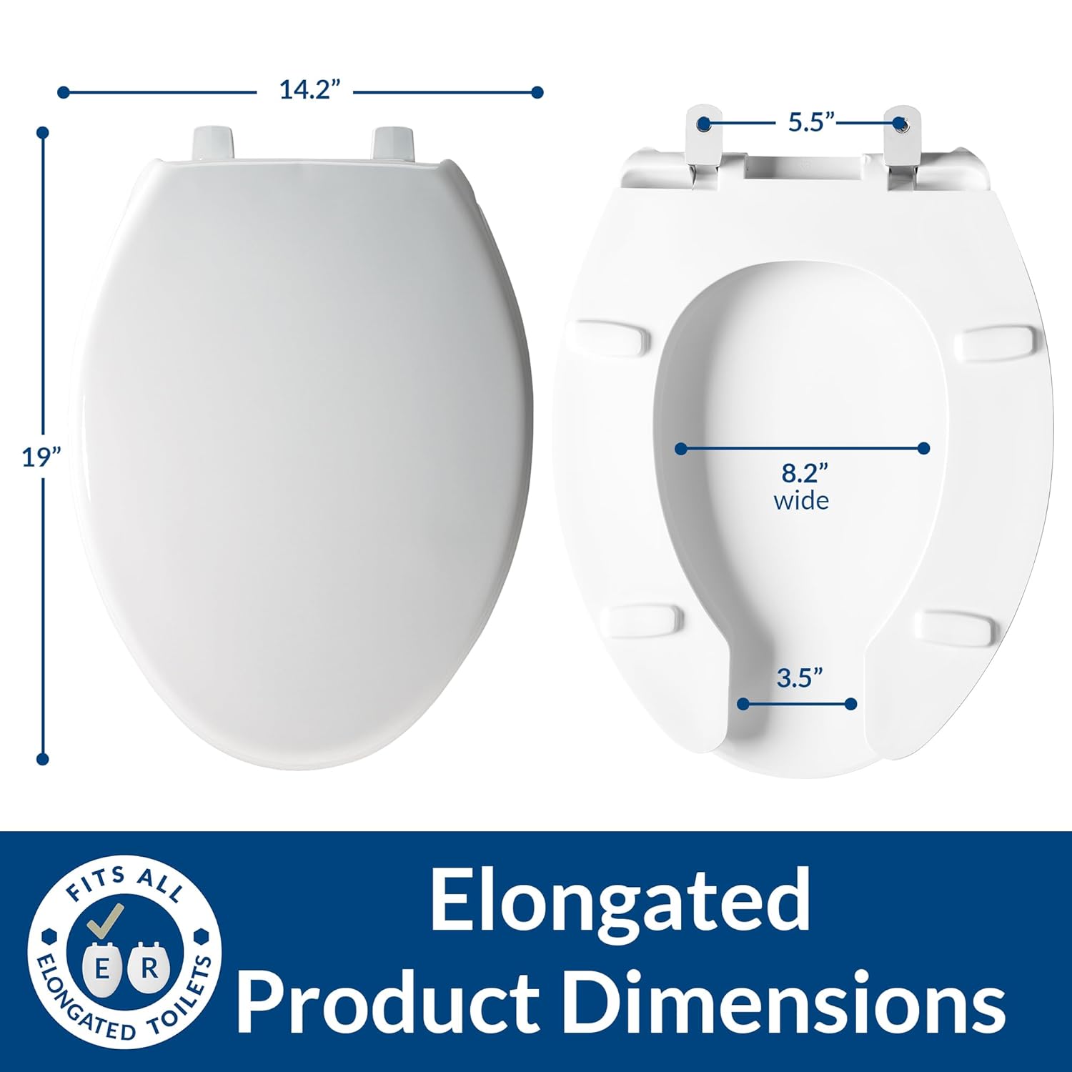 - Fits all manufacturer’s elongated bowls
