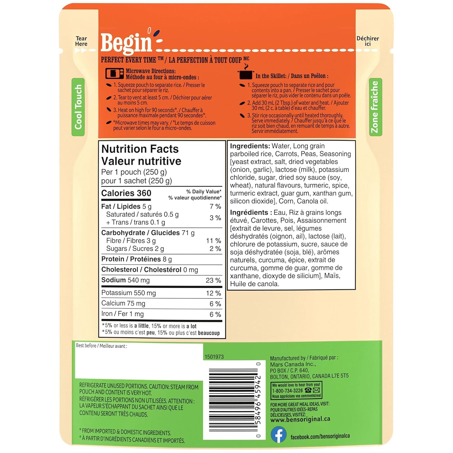 - Place the pouch of BEN’S ORIGINAL rice in the microwave and cook it for 90 seconds, or pour the contents into a skillet and heat thoroughly
