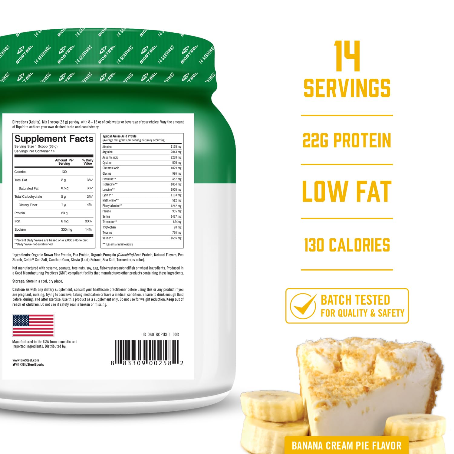 BioSteel Plant-Based Protein Powder, Banana Cream Pie, 14 Servings, Vegan Protein Shake Mix with 23g Complete Protein, Dairy Free, Sugar Free