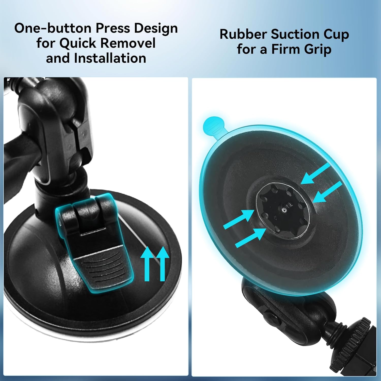 - 【One-button Removal & Installation】After determining the adsorption position, just press the button above the suction cup to firmly adsorb it with one button. Pull the button up to remove the suction cup bracket.