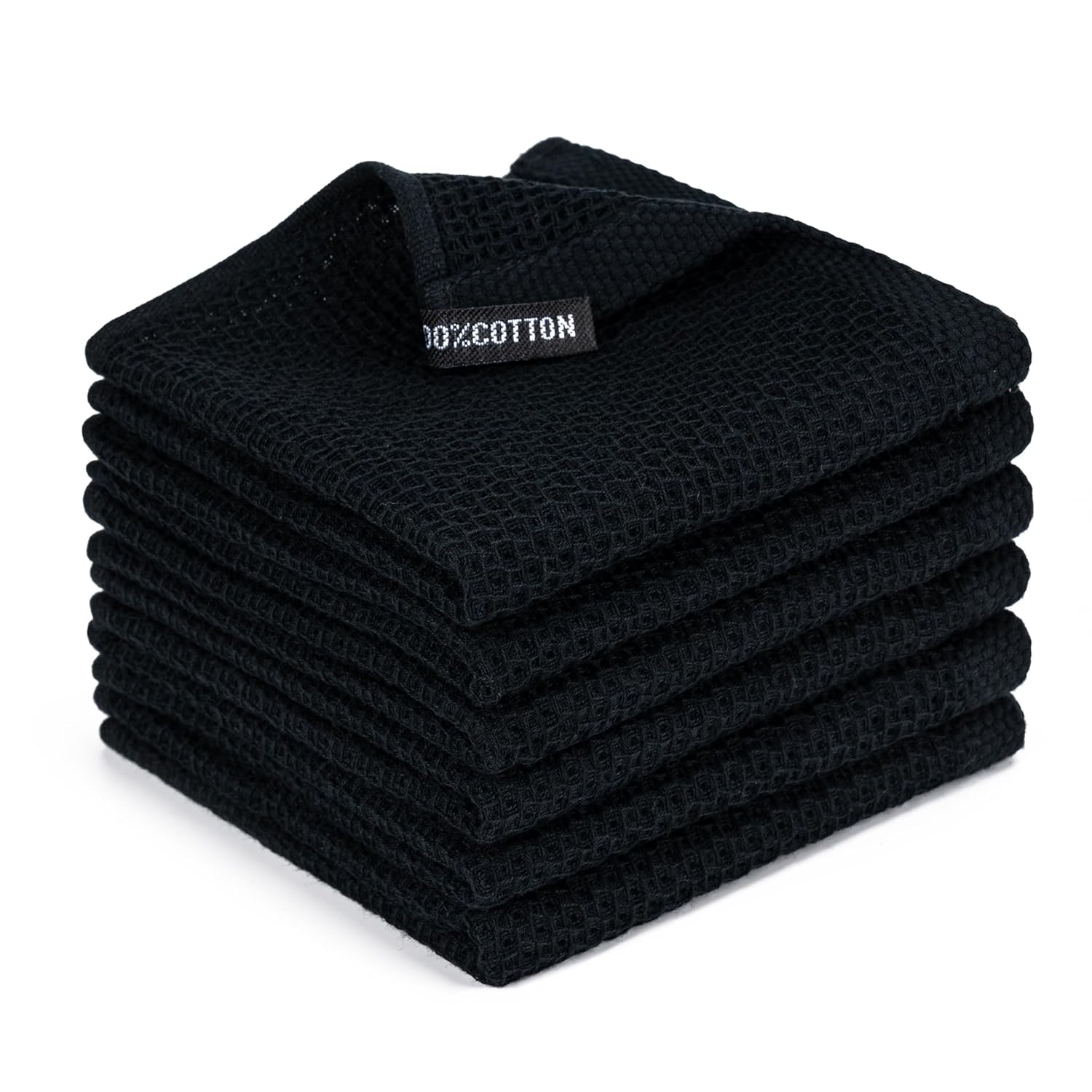 BOOMIBOO Cotton Kitchen Dish Towels, 12″ x 12″, 6 Pack, 100% Cotton Waffle Weave, Soft Absorbent, Black, Quick Drying Dish Towels