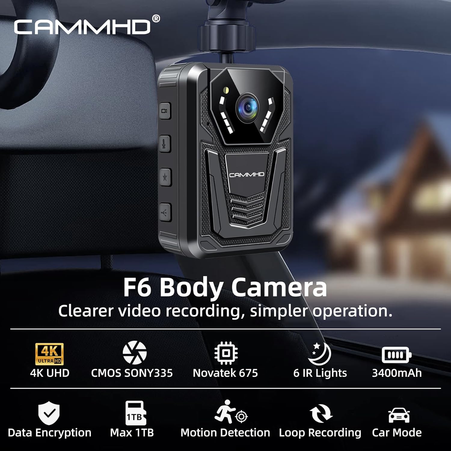 CAMMHD F6-256GB 4K Body Camera, 3400mAh Battery Work 12-14Hours,Waterproof IP68 Body Cameras with Audio and Video Recording H.265 Video Code Police Body Cam for Law Enforcement