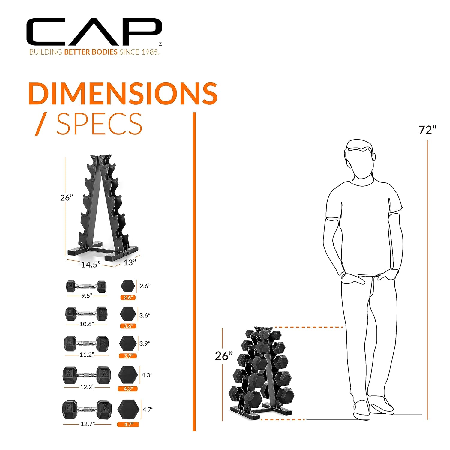 13 reviews for CAP Barbell Rubber Coated Dumbbell Weight Set with Vertical Rack | 150 lb, and 210 lb Options