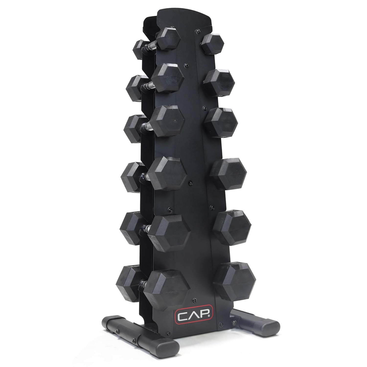 The CAP Barbell Rubber Coated Dumbbell Set with Vertical Rack is a fantastic addition to any home gym. The weights feel solid, the rubber coating helps protect floors, and the vertical rack saves space while looking sleek.