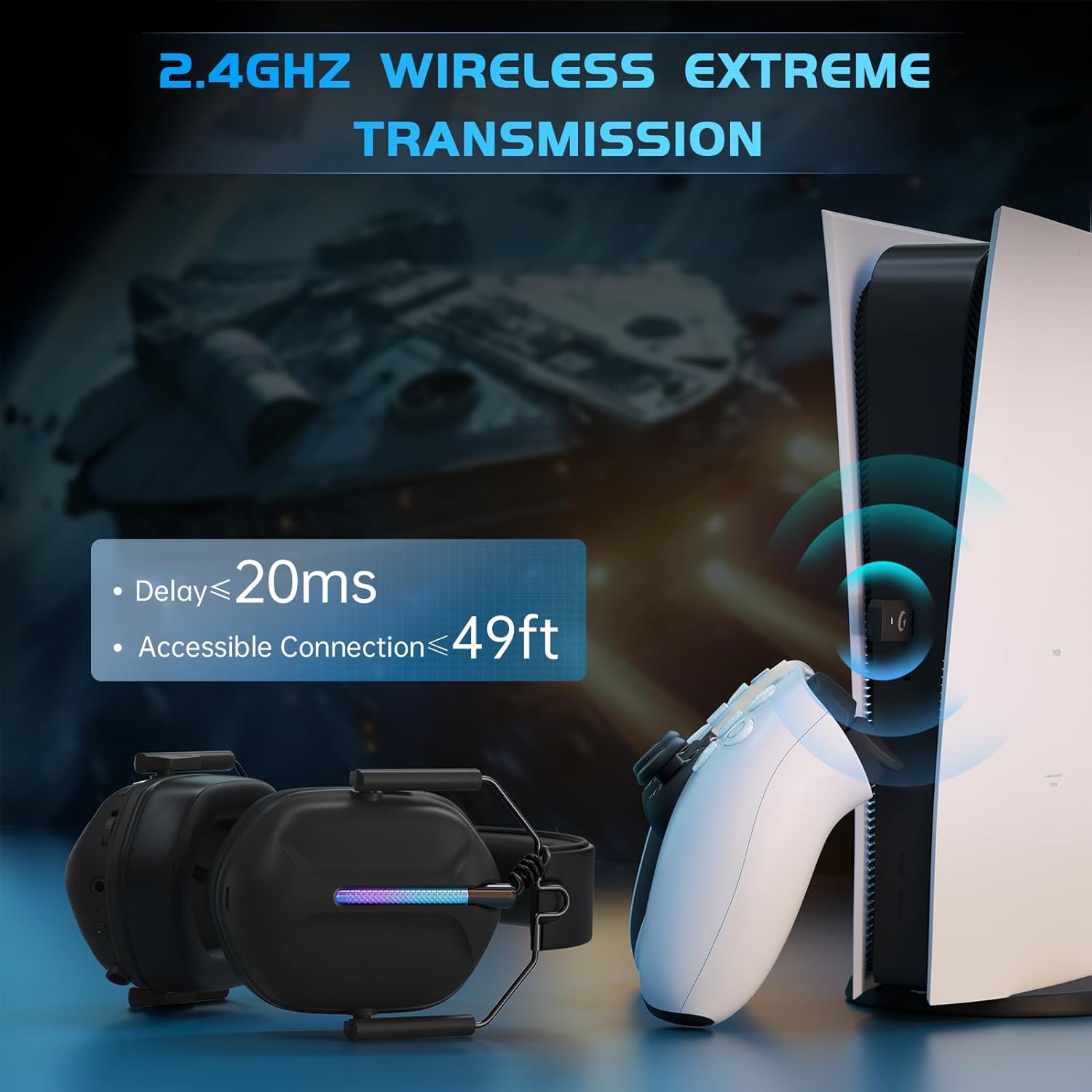Captain 500 Wireless Gaming Headset with Detachable Noise Cancelling Microphone, 2.4G Bluetooth Headphones with 3.5mm Wired Jack