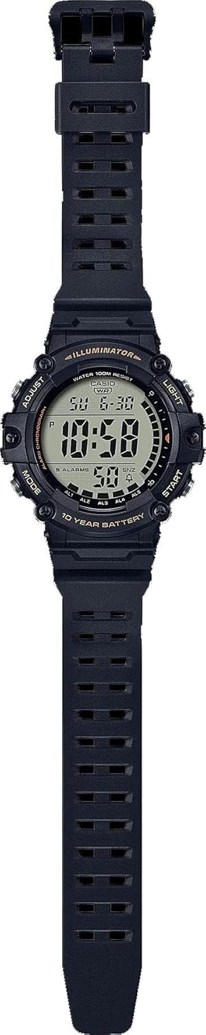 Casio Illuminator Extra Long Strap 10-Year Battery 100 M Water Resistant 5-Alarm w/Countdown Timer Men’s Digital Watch, Black, AE-1500WHX-1AVCF, Black, Sport