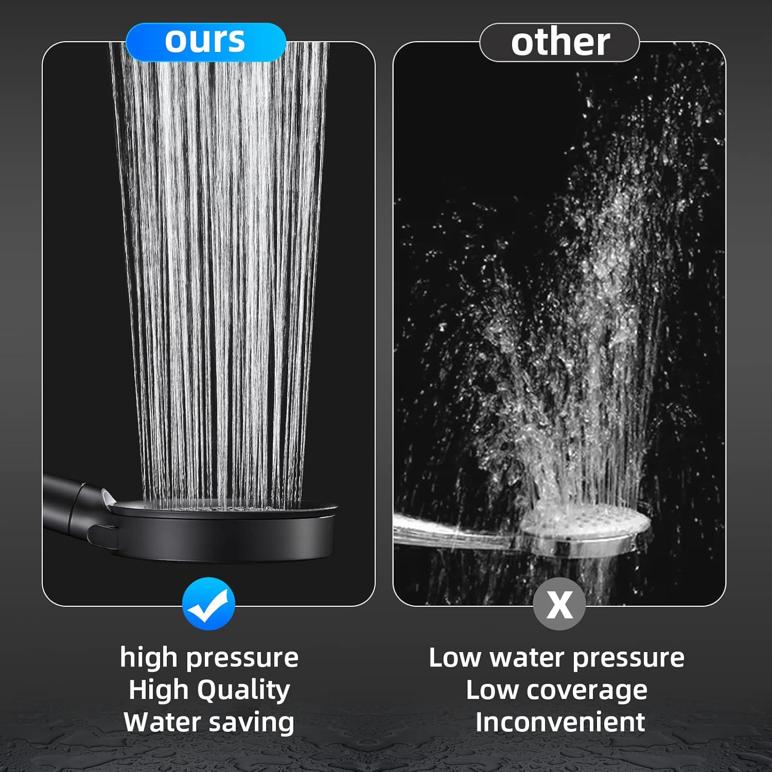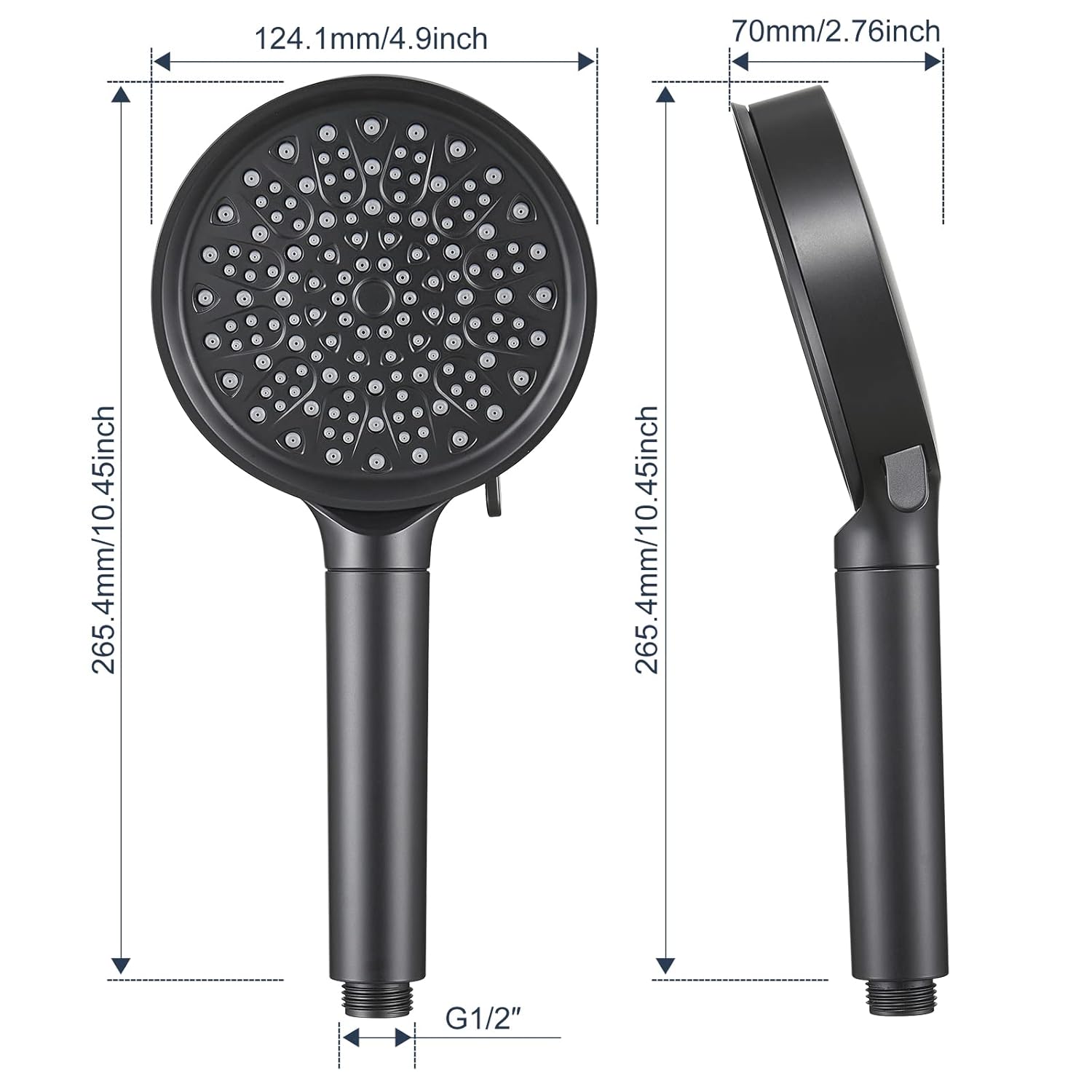 - 【High pressure &Water saving】: The shower has a large 4.9-inch panel with a unique internal space structure and pressure boosting technology. It provides a full-coverage showering experience even under low water pressure. Let you fully enjoy the pleasure of showering.