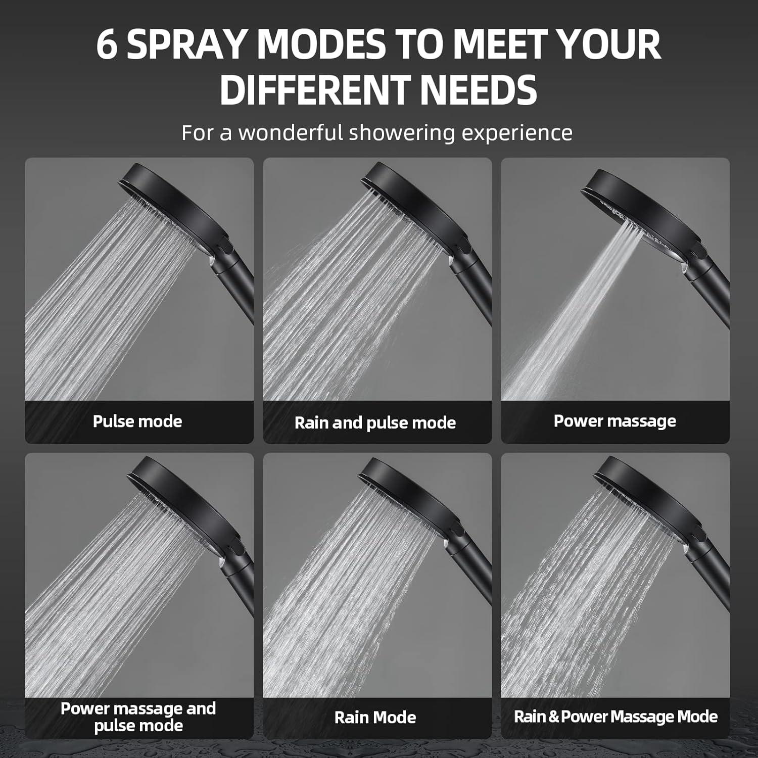 - 【6-Spray Functions】:This handheld shower has 6 selectable modes, and when you rotate the handle on the shower panel, you can easily switch between the different modes you want. The interesting combination of various modes can help you eliminate the fatigue of the day.