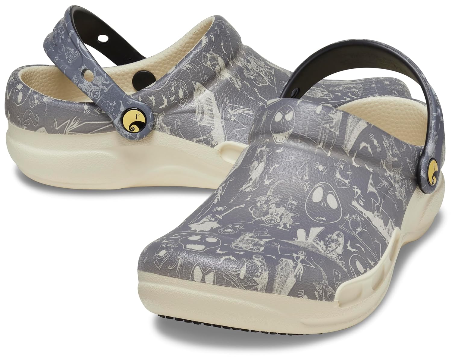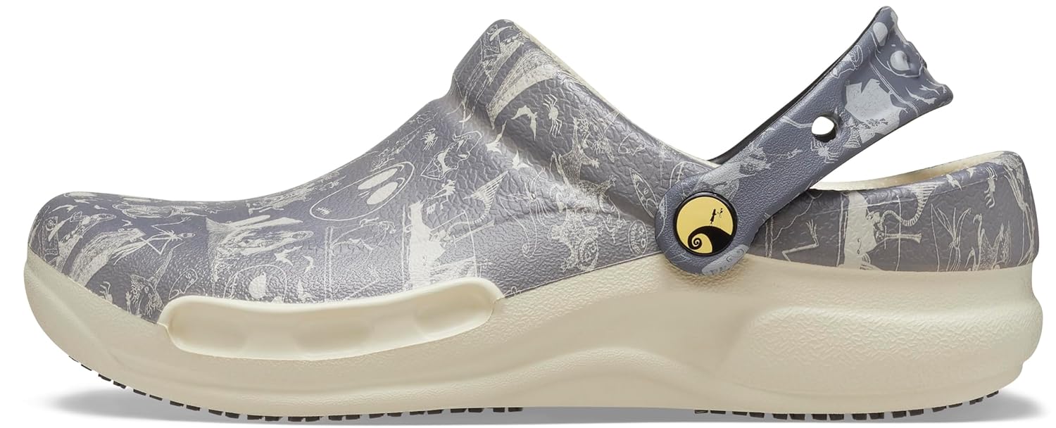- Nightmare-Ready Comfort at Work: Step into the whimsical world of The Nightmare Before Christmas with our themed Bistro Clogs. Tailored for those in food service, hospitality, and healthcare, these shoes become your quirky companions on the job.