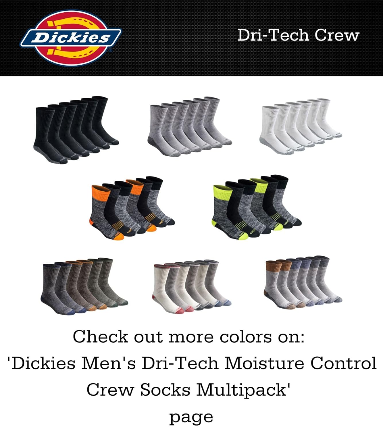 13 reviews for Dickies Men Dri-tech Essential Moisture Control Crew Socks, Available in M-xxl (6, 12 Pairs) Socks
