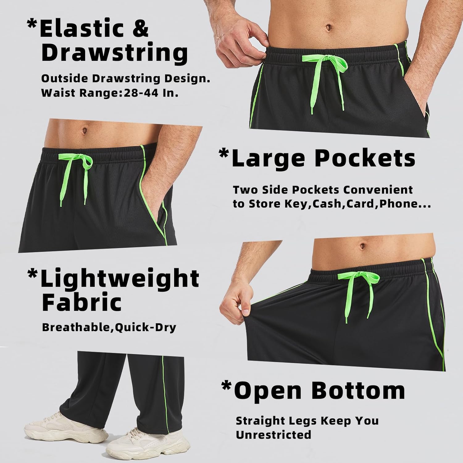 - Quick-Dry&Breathable: The sweatpants for men are made with quick-dry and breathable mesh material helps release moisture away from your skin keep you cool and comfort.