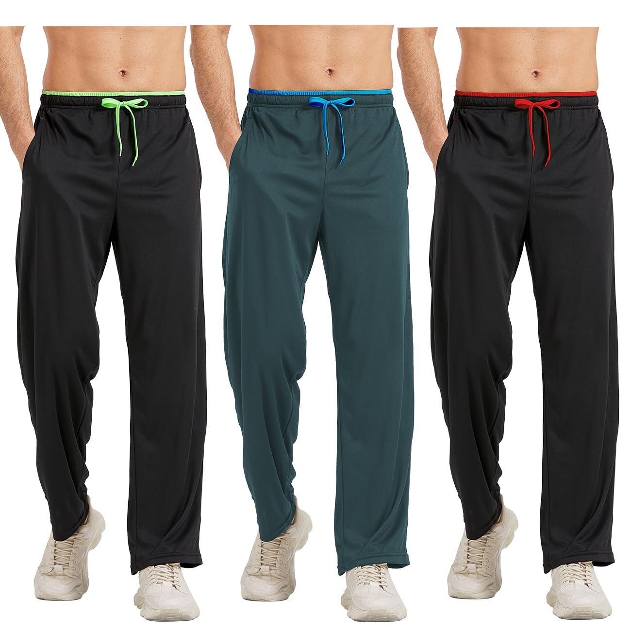 DWUGD’L 3Pack Men’s Lightweight Sweatpants with Pockets Open Bottom Athletic Pants for Workout,Jogging,Gym,Running,Training