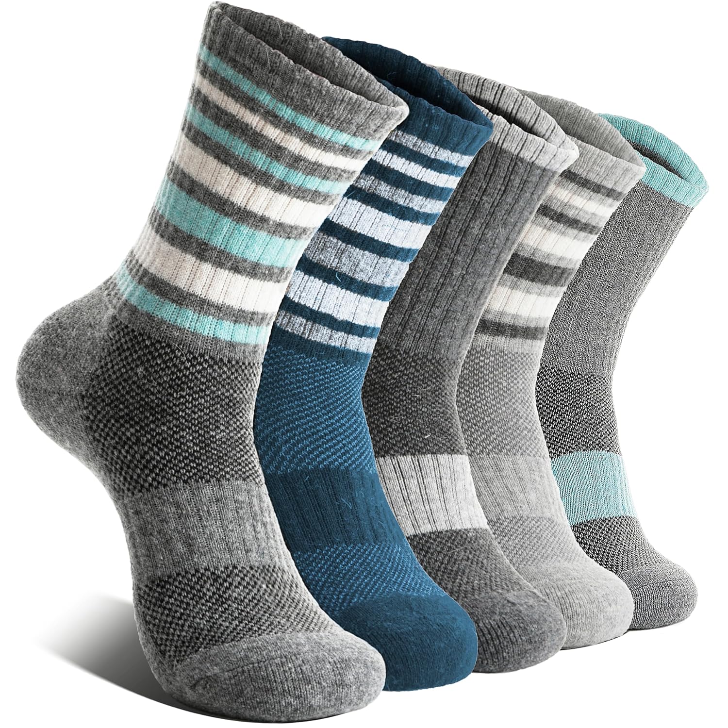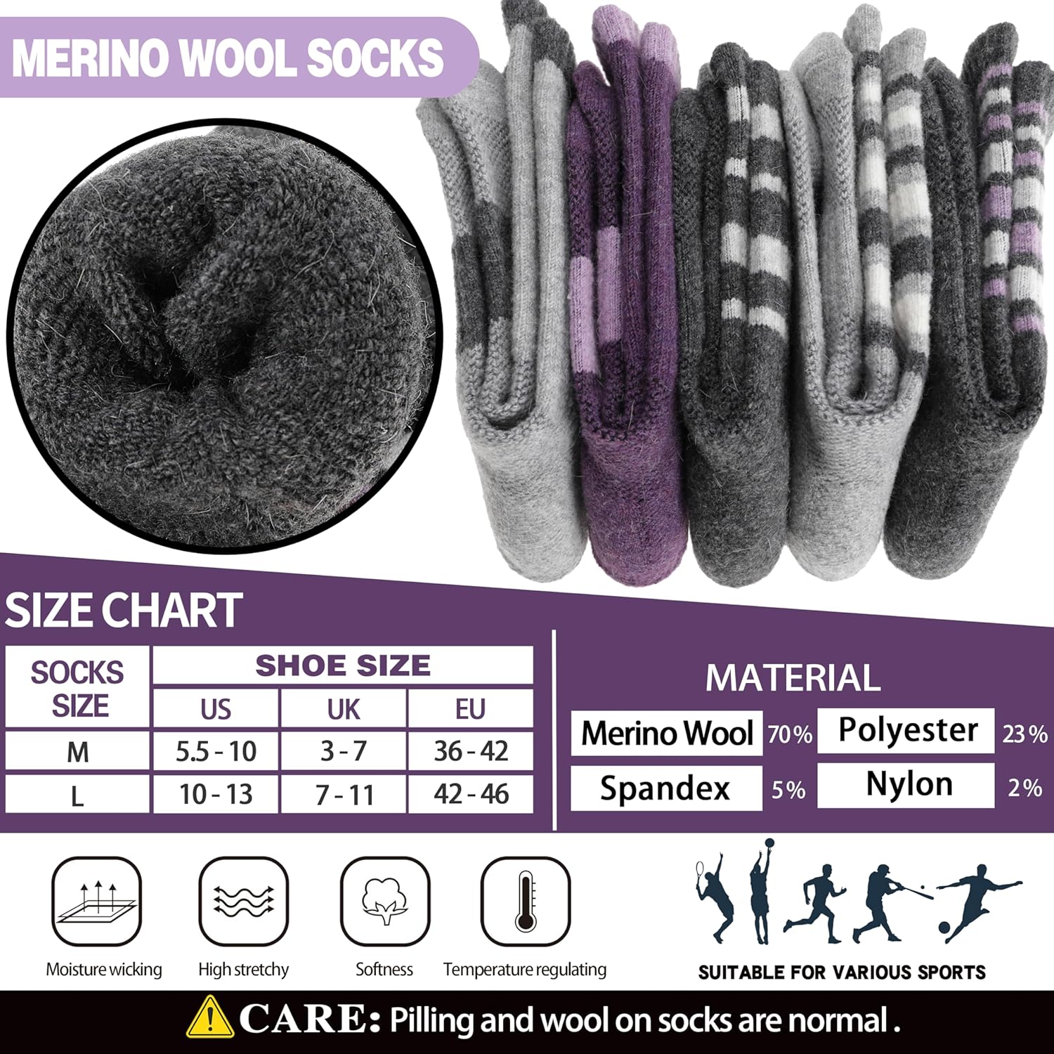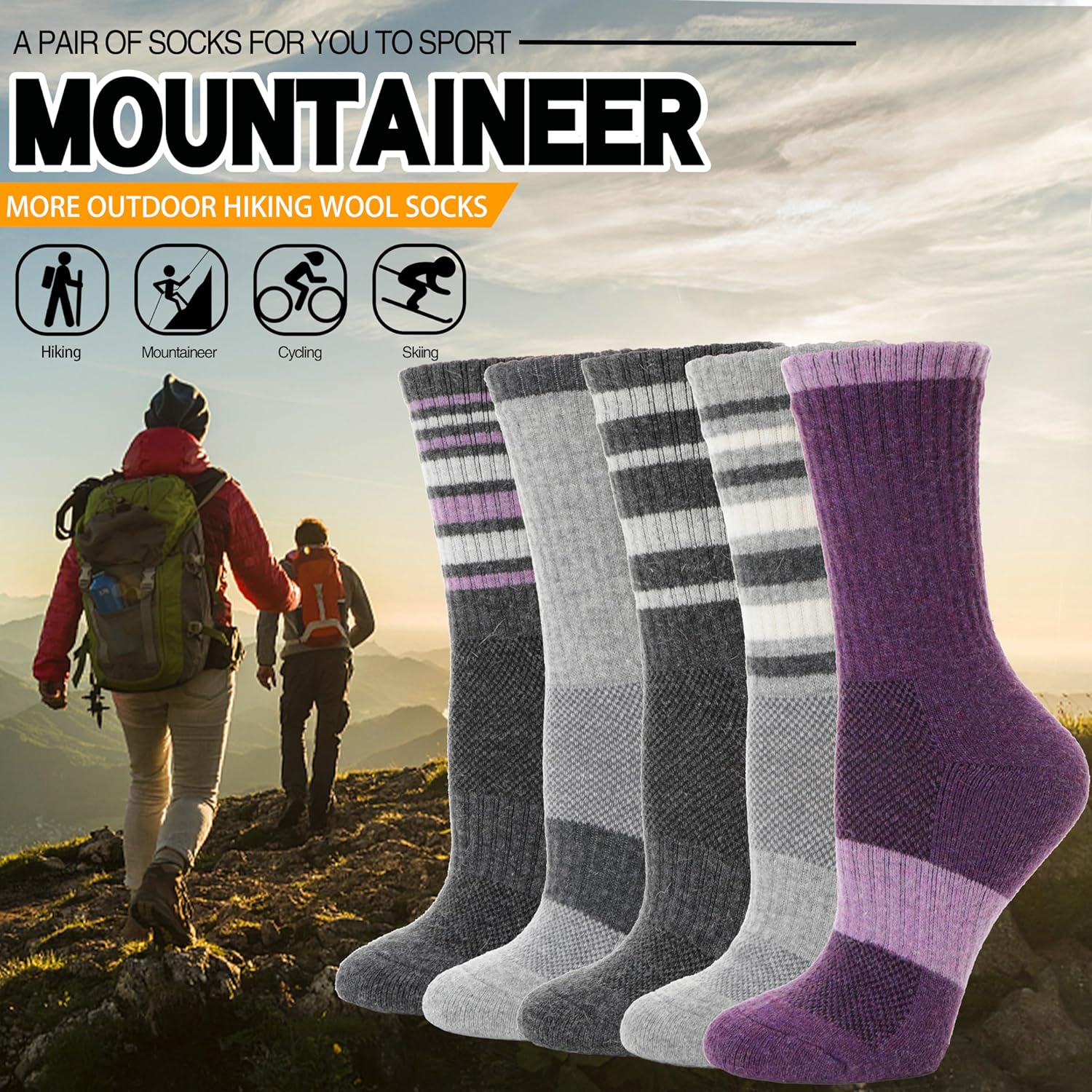 EBMORE Womens Merino Wool Hiking Socks Thermal Winter Warm Crew Cushion Compression Work Moisture Wicking Socks 5 Pairs
