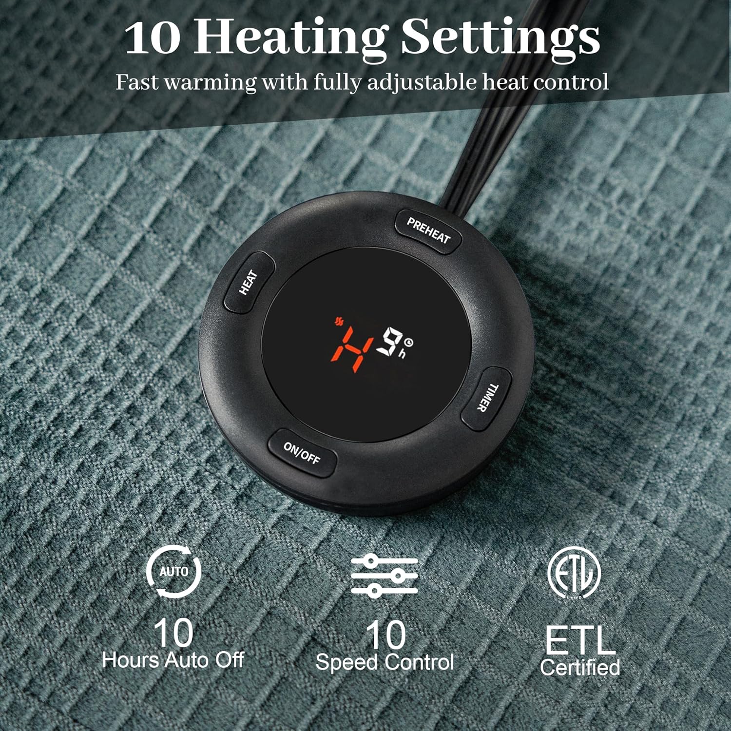 - 10 Heat setting:10 heat settings programable digital controllers easy push button design allows you to set temperature. you can choose the temperature that suits you best. you can set these heated blanket up to a maximum of 45°C .