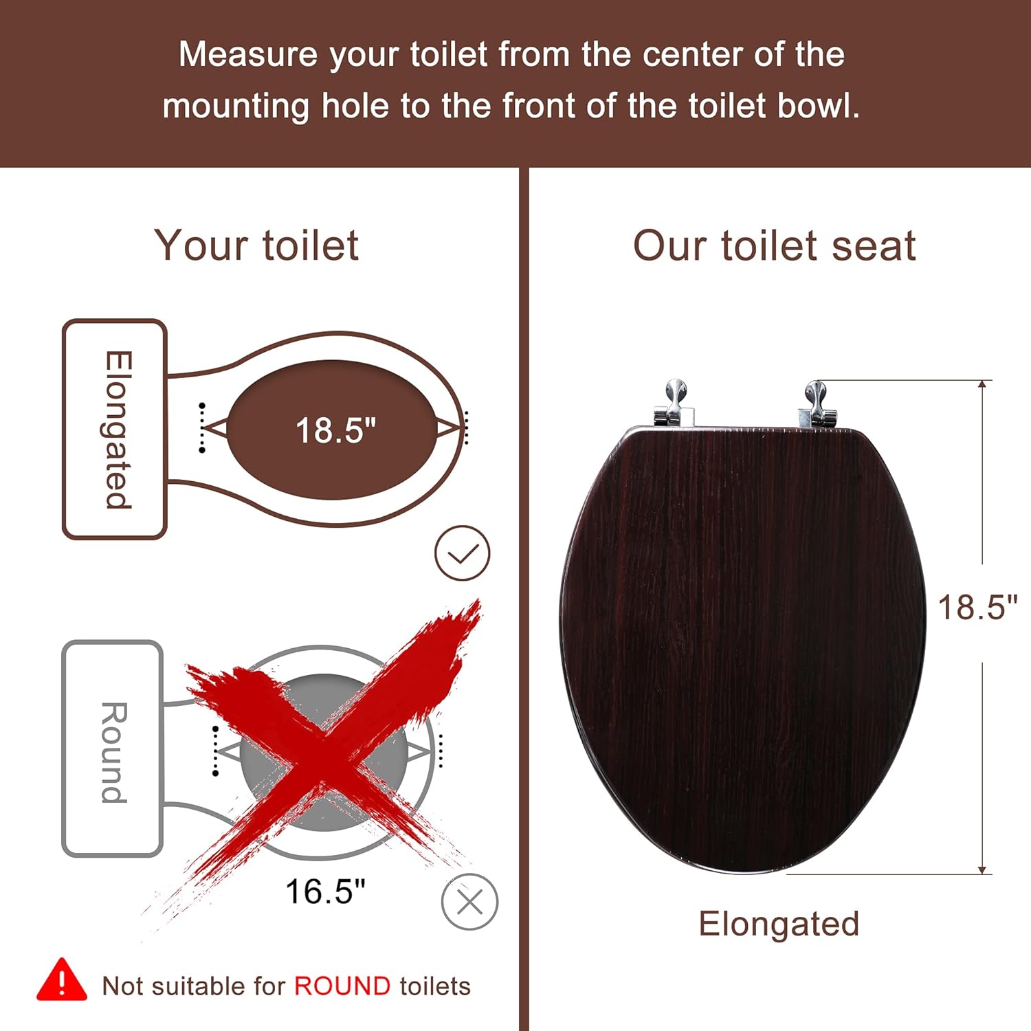 - 【ELONGATED SIZE】If the size does not match, even if you particularly like our toilet seat, you will definitely be dissatisfied. The 🚽ELONGATED🚽 toilet seat you are viewing is only suitable for ELONGATED toilets. Please measure the size of the toilet before purchasing to ensure that it can match. Our toilet seats FIT ALL AMERICAN TOILET BRANDS including Crane, Universal Rundle, Eljer, Delta, Bemis, Caroma and Gerber ETC…