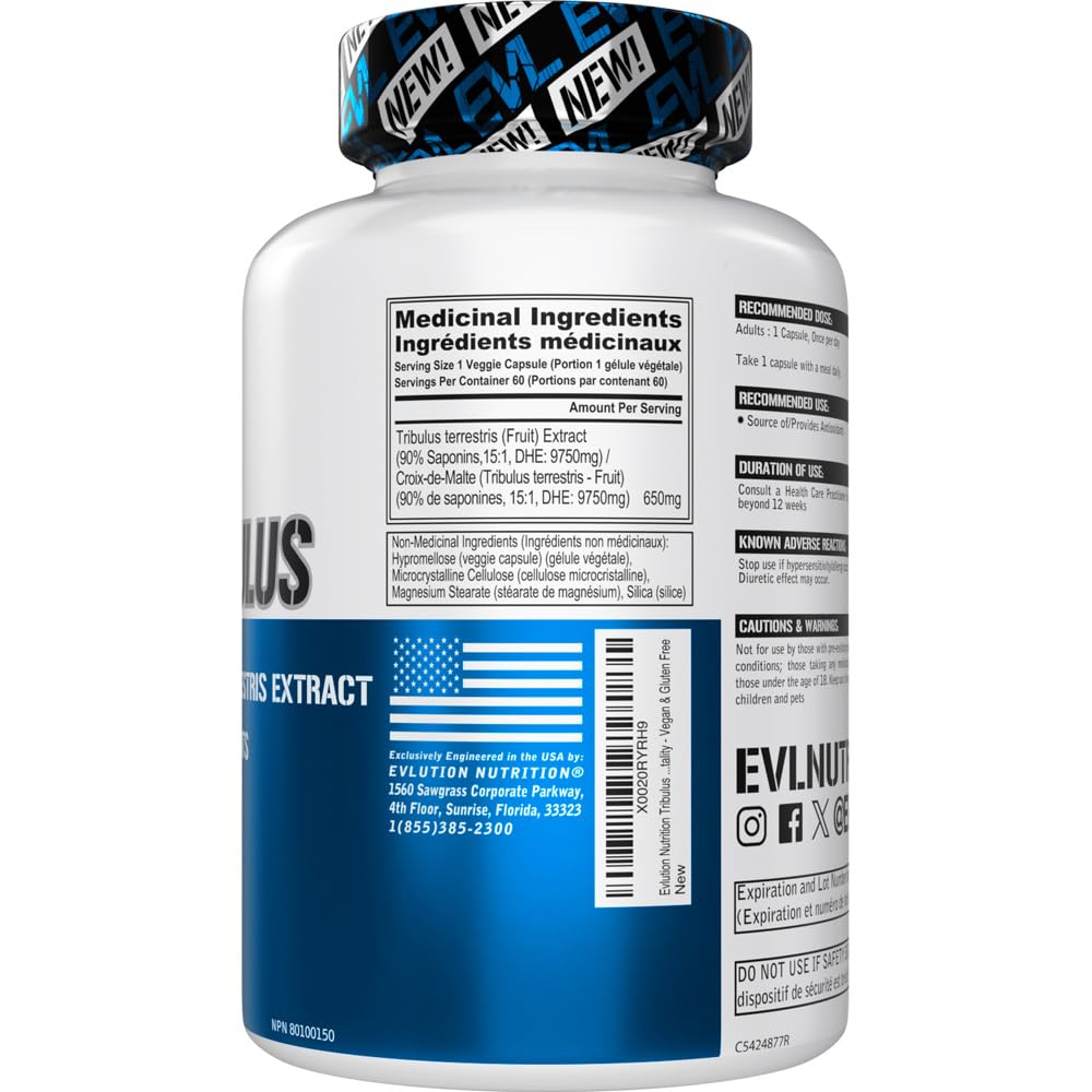 Evlution Nutrition Tribulus Terrestris for Men – Maximum Potency 90% Saponins Pure Tribulus – Stimulant Free Supplement for Men – Vegan & Gluten Free – 60 Servings