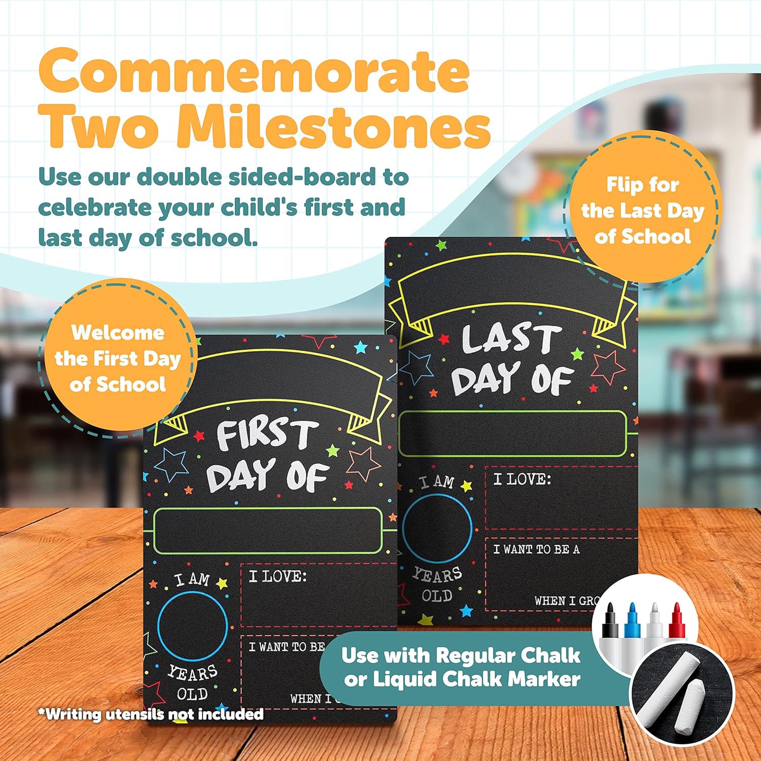- DOUBLE SIDED – No need to keep track of multiple boards, our double-sided design allows you to photograph the first day of school in August, then simply flip it over for the last day of school in May