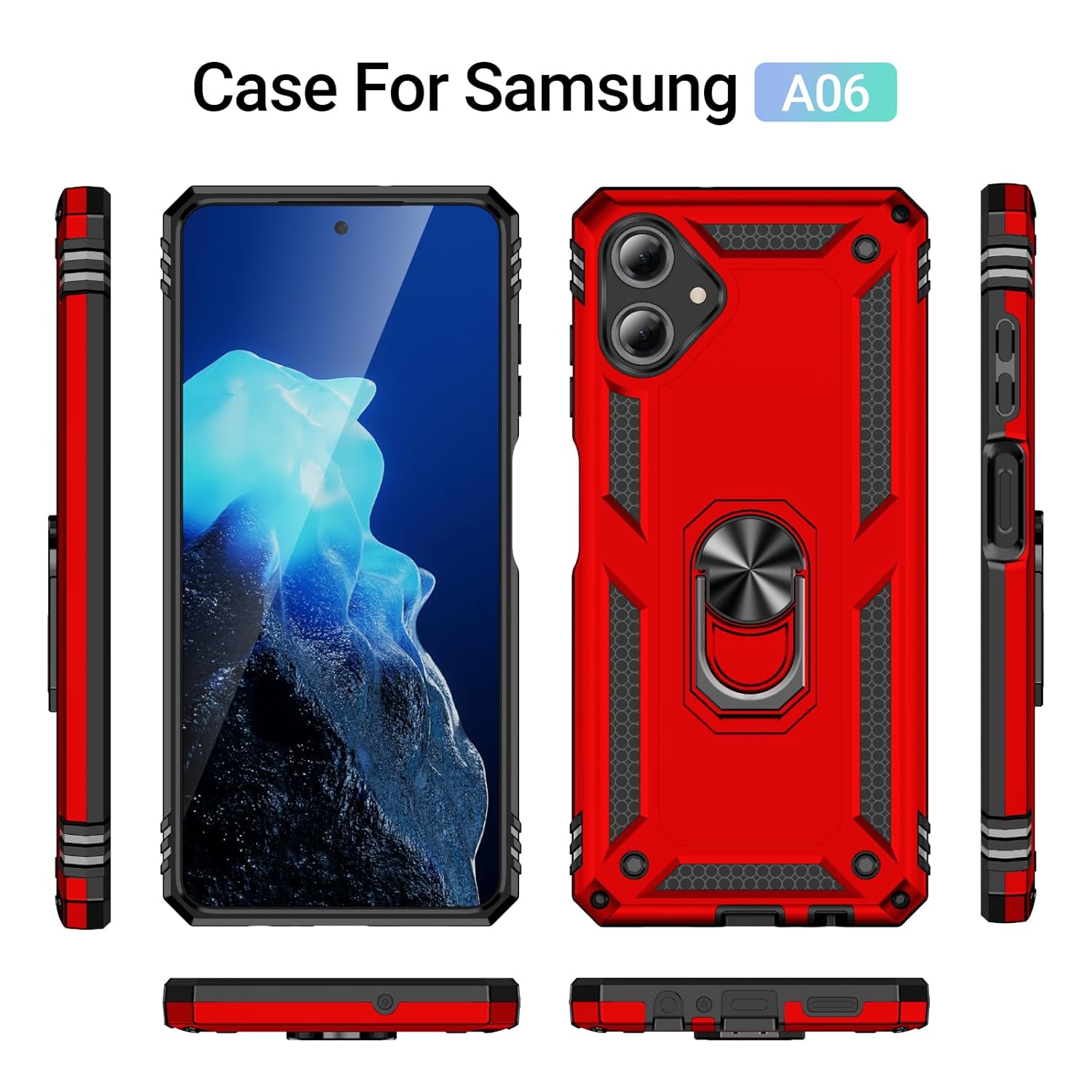 - 【Multi Function】360 Degree Rotating Metal Ring Kickstand supports to work with magnetic car mountand .The Ring at back cover can also work as kickstand to hold up your Samsung Galaxy A06 Phone while you are warching movie or video.