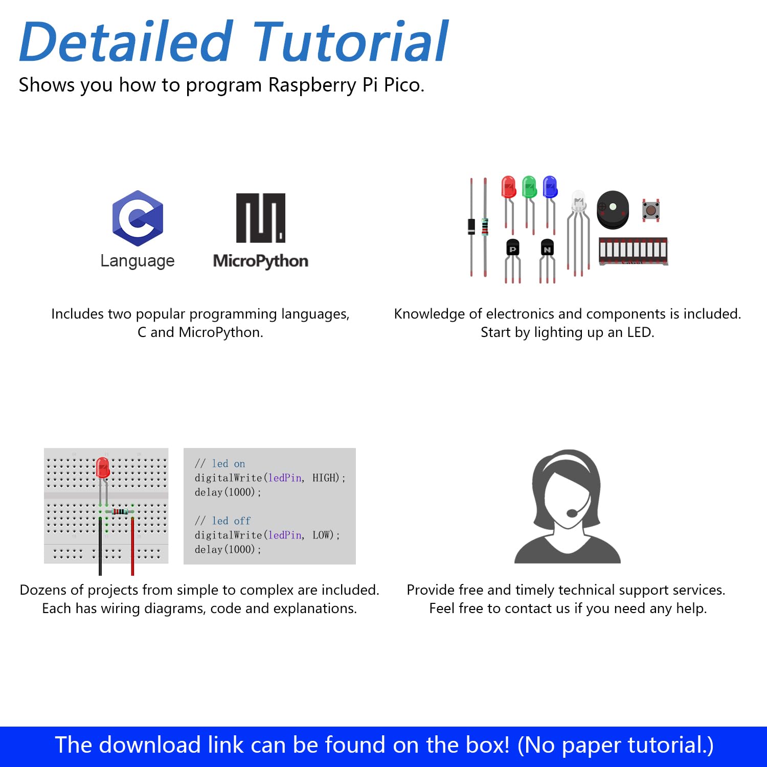 - 386-page Detailed Tutorial in Total: Provides step-by-step guide with basic electronics knowledge (The download link can be found on the product box) (No paper tutorial)