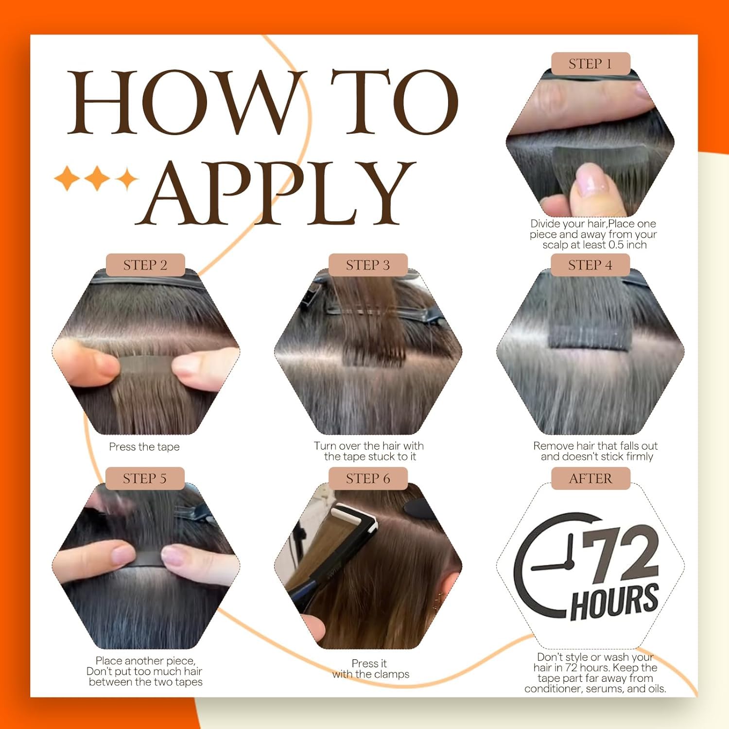 - Easy to Use: For Sandwich Method, Do Not Heat the Tape Using Excessively High Temperatures; The Two Pieces Must be Aligned; Don’t Add Too Much Hair in the Middle, These Extensions Come with a Pre-Taped Adhesive Strip, Making it Incredibly Easy to be Attached