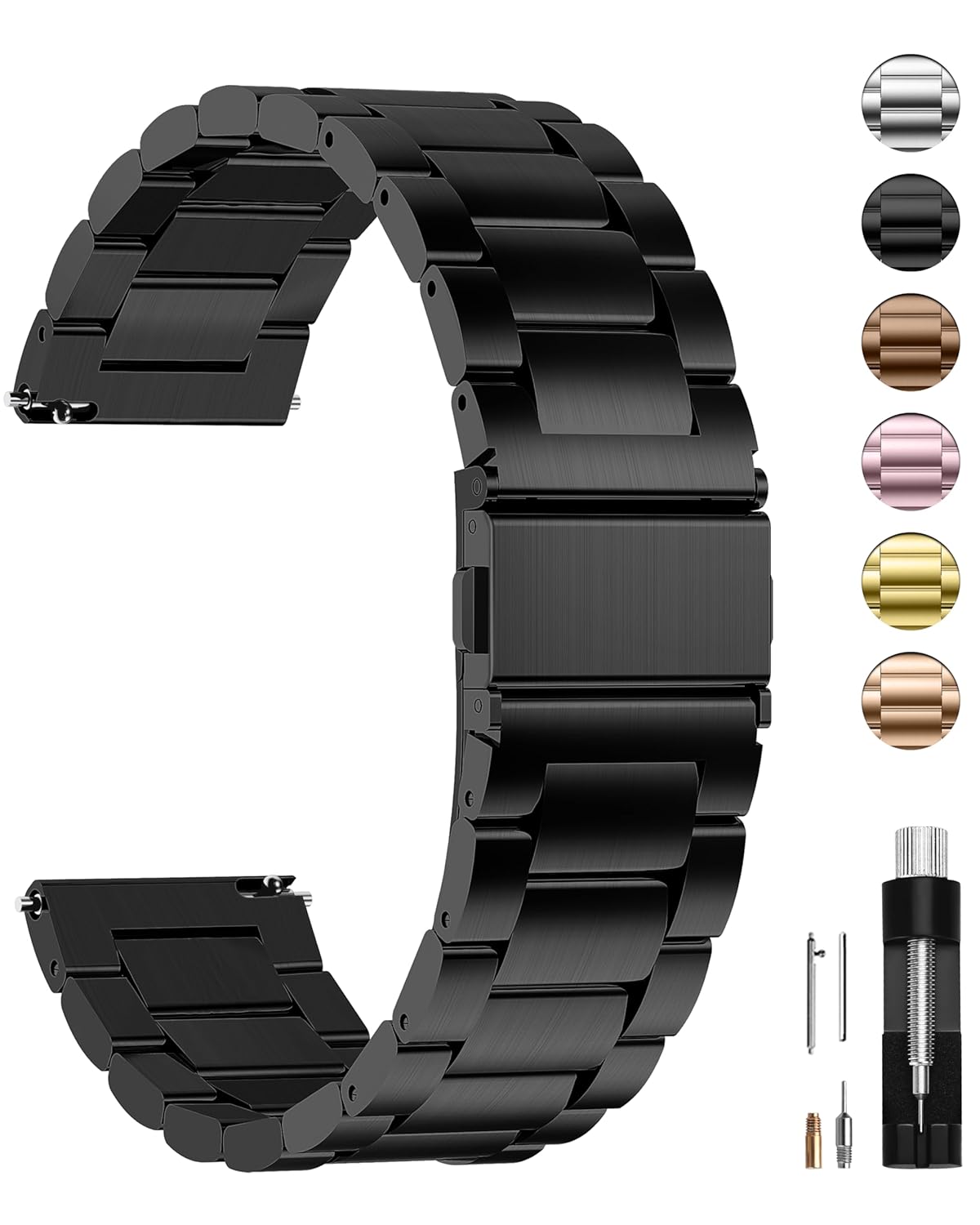 - What You Get: 1*Stainless Steel Watch Band, 1*Product Manual, 1*Quality Control Card, 1*Link-remove Tool, 3*Quick Release Pin, 2*Link Pins.