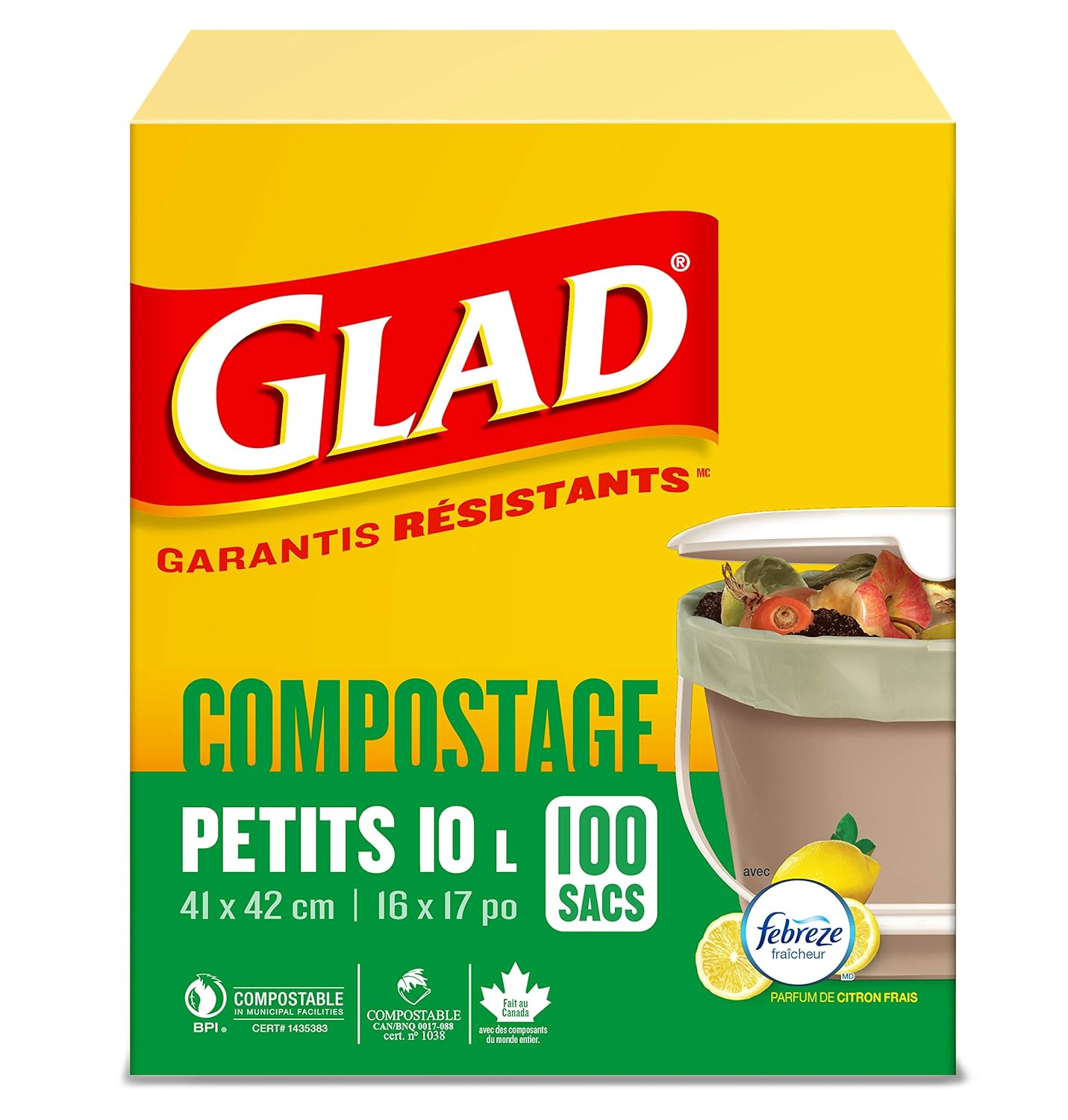 - SMALL COMPOST BAGS: Box of 100 Glad Small 10L 100% compostable bags