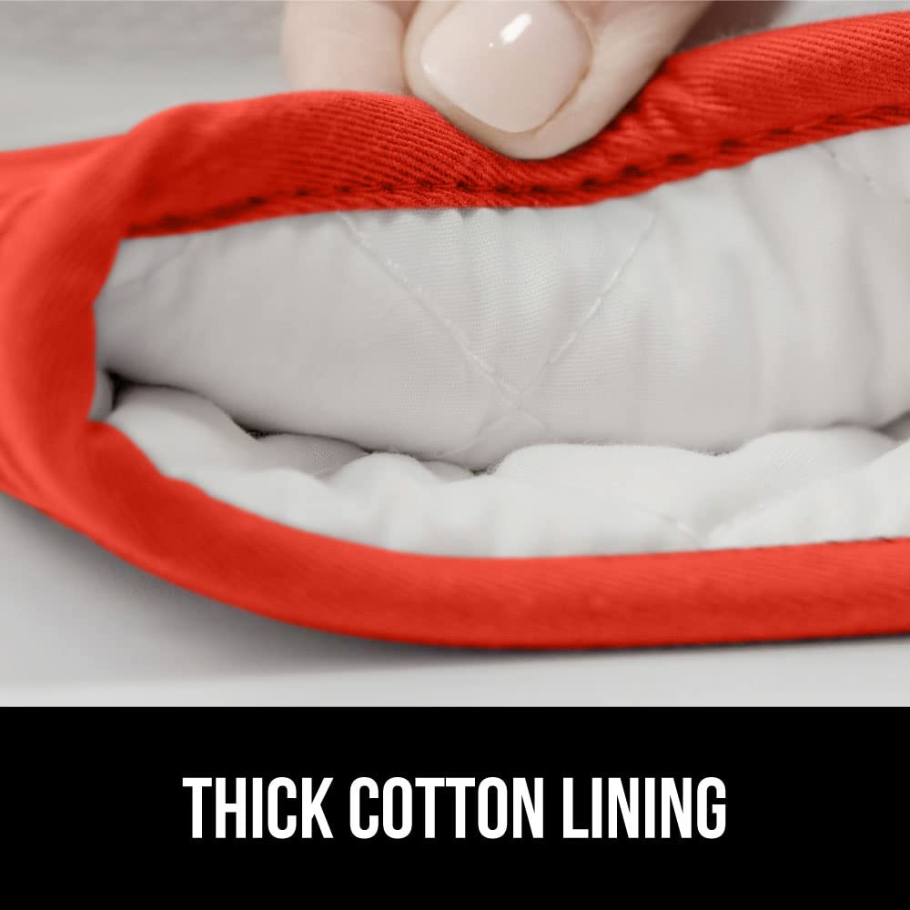 - THICK COTTON LINING THROUGHOUT: stay comfortable while you cook; soft cotton lining offers additional protection and comfort, and feel simply amazing; plus, silicone is flexible and conforms easily to your unique grip
