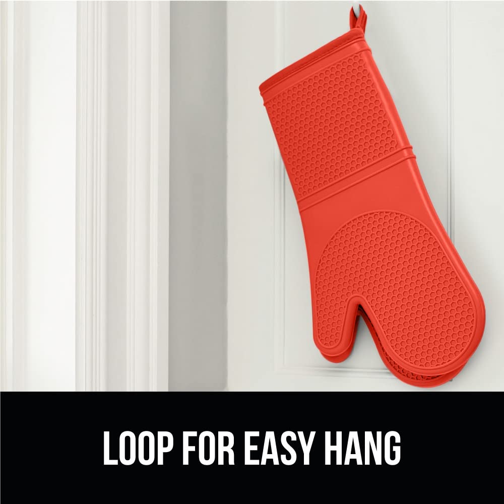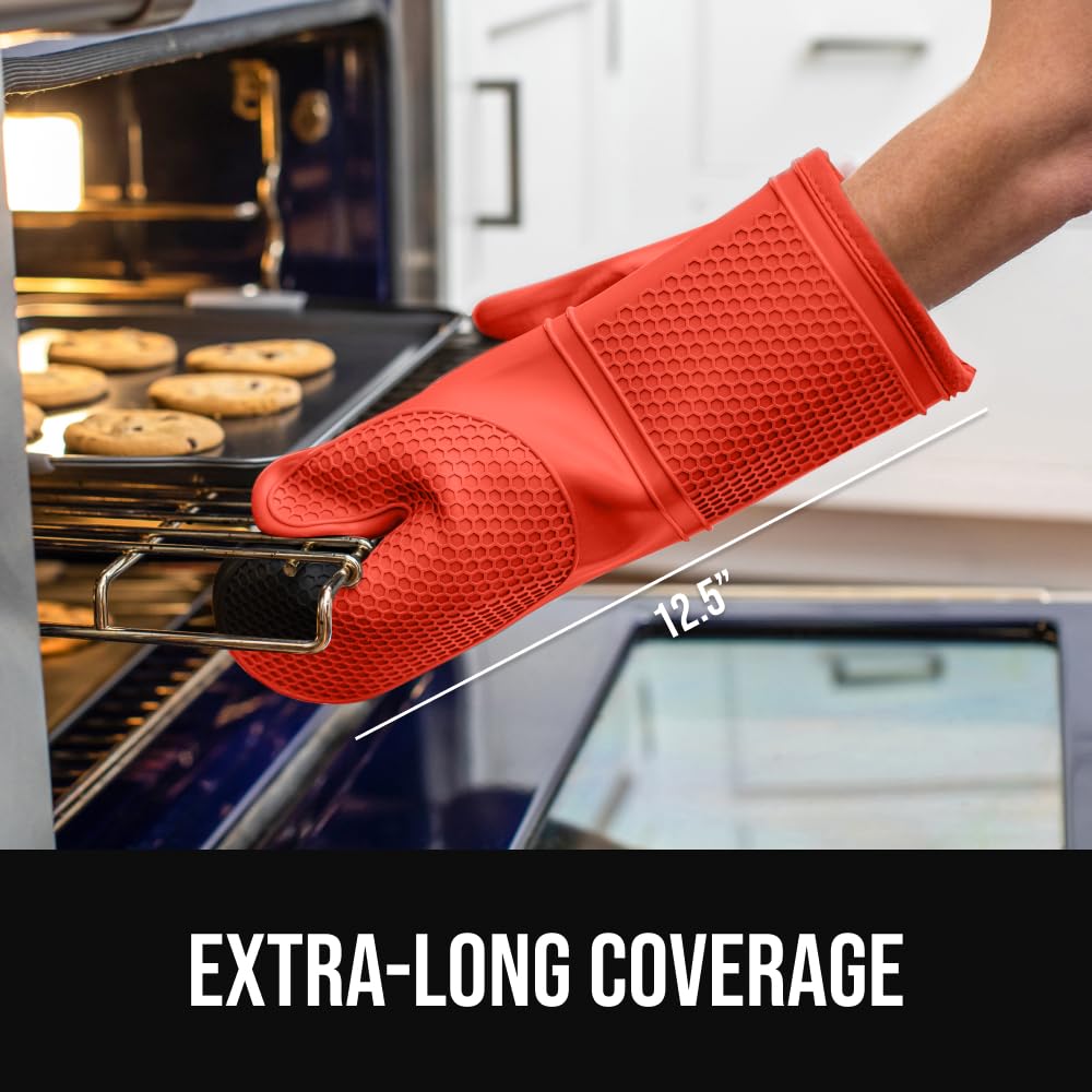 GORILLA GRIP Slip and Heat Resistant Silicone Oven Mitts, Soft Quilted Lining, Extra Long, Waterproof Flexible Gloves for Cooking and BBQ, Mitt Potholders, Kitchen Décor, Coral…